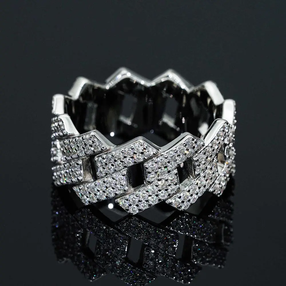 Certified Full Moissanite Diamond Cuban Rings for Men Women 100% 925 Sterling Silver Hip Hop Double Row Eternity Band Ring