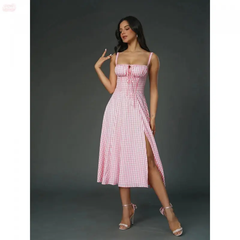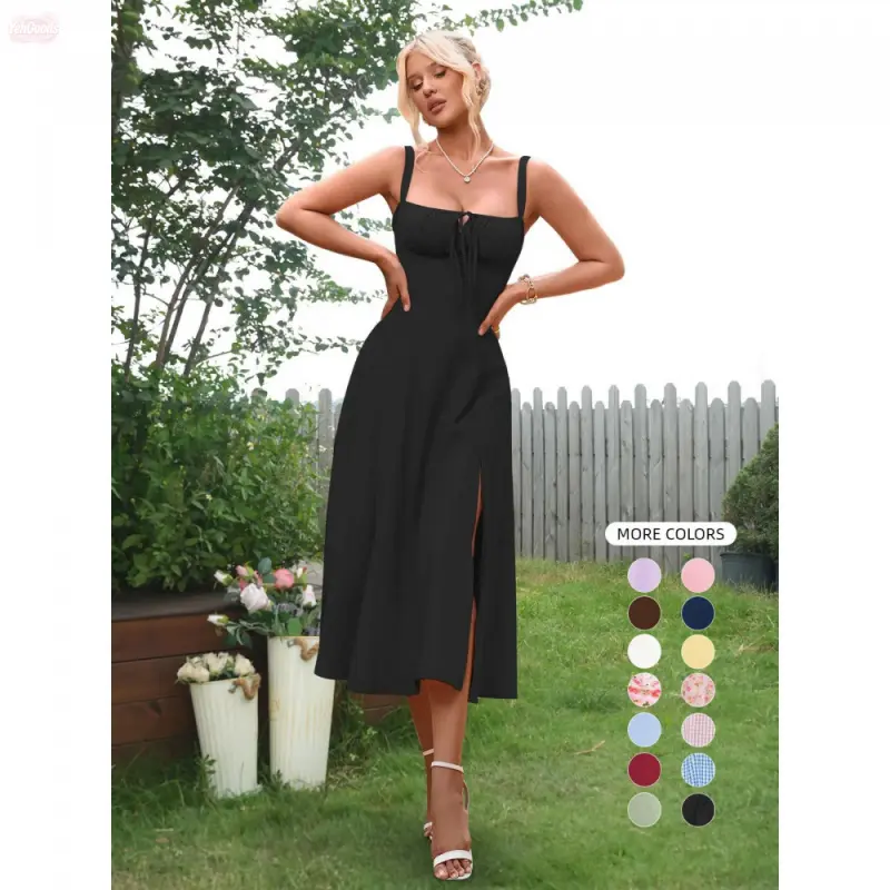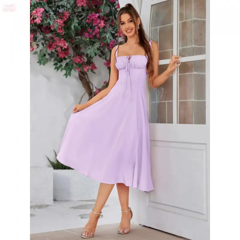 YehGoods 2026 Women's Plain Ruched Boning Corset Milkmaid Dress, Lace Up Dress, Party Dress, Split Thigh Dress, Tie Front Dress, Elegant Square Neck Midi Dress, Dresses for Women, Frenchy Style Non Bodycon Dress Christmas, Formal Dresses