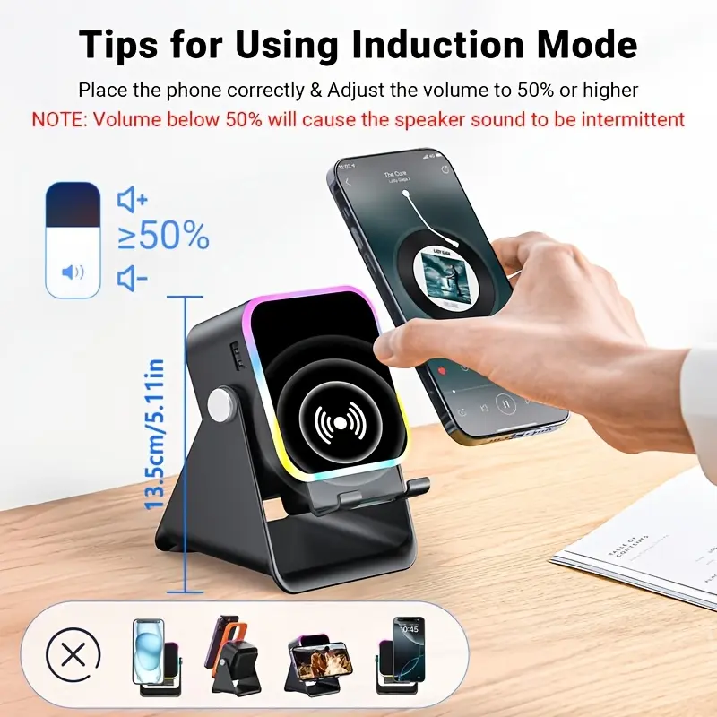 Experience immersive 360° stereo sound with deep bass and crystal-clear highs. Built-in RGB ambient light offers 8 dynamic modes, perfect for relaxing, parties, or bedtime listening.