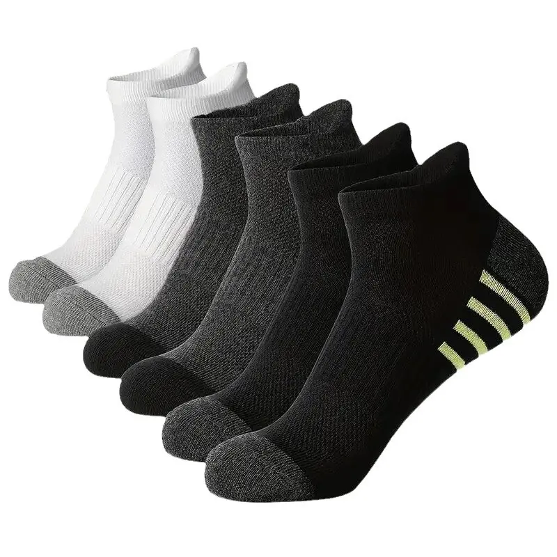 Large size men's short socks mesh breathable ear-lifting sports socks wholesale spring and summer black and white short cotton socks