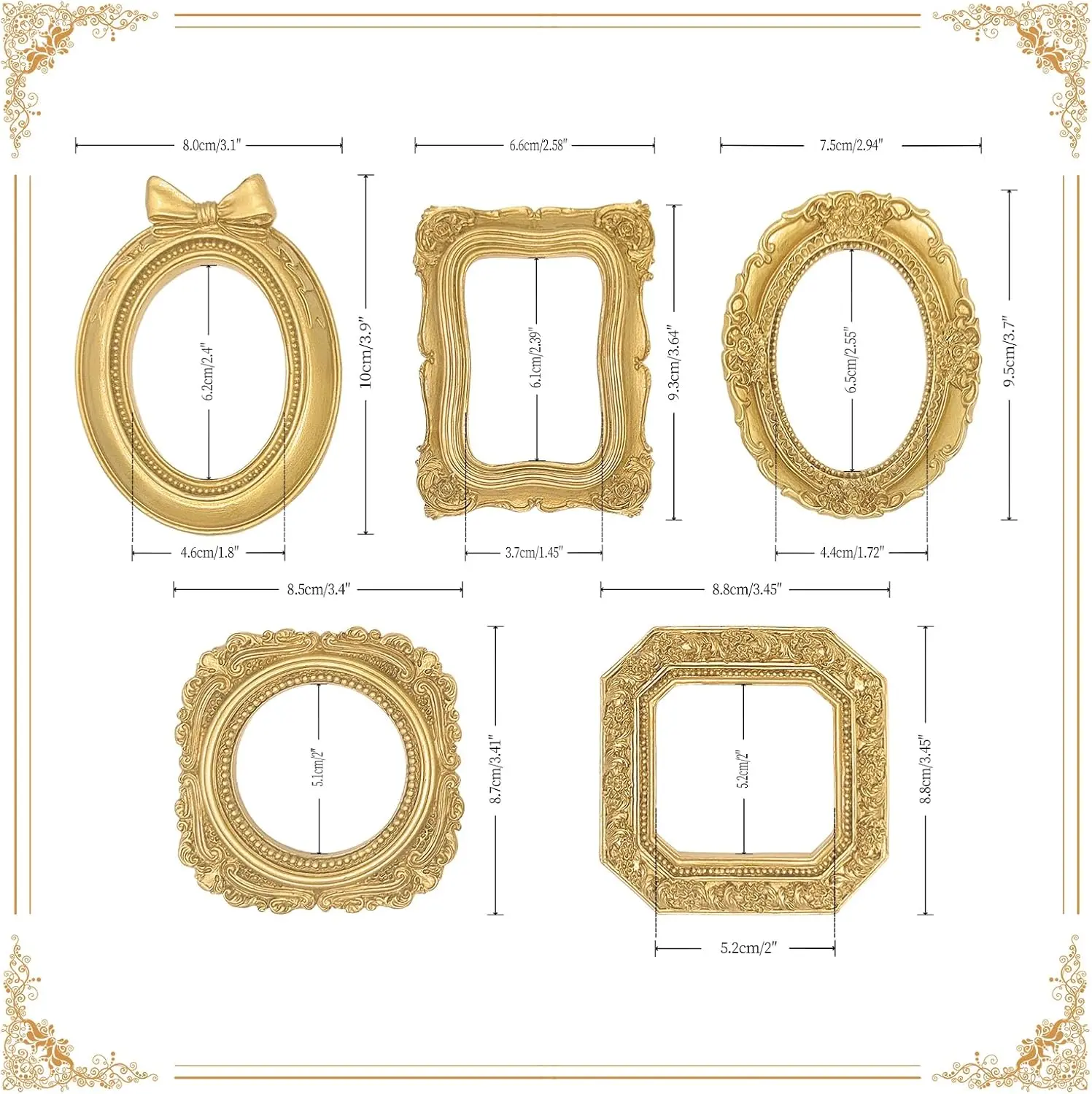 Material: This set of vintage picture frames is crafted from resin and undergoes multiple processes, resulting in a substantial and refined feel. Each mini picture frame weighs approximately 40 grams.