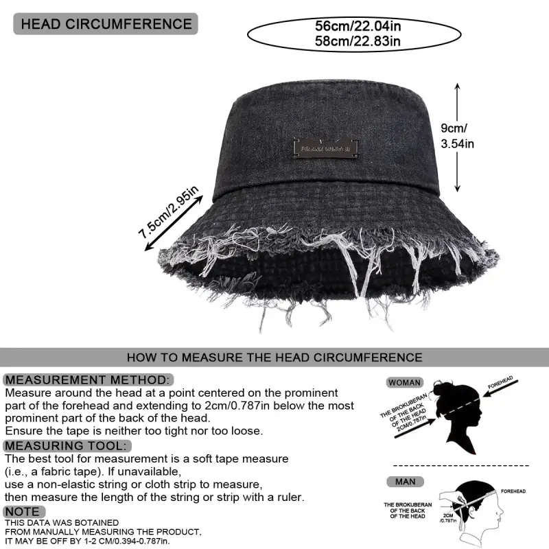 Unisex Letter Logo Vintage Edge Holes Denim Bucket Hat Outdoor Sunscreen Leisure Hat Spring Autumn Travel Tourism Beach Vacation