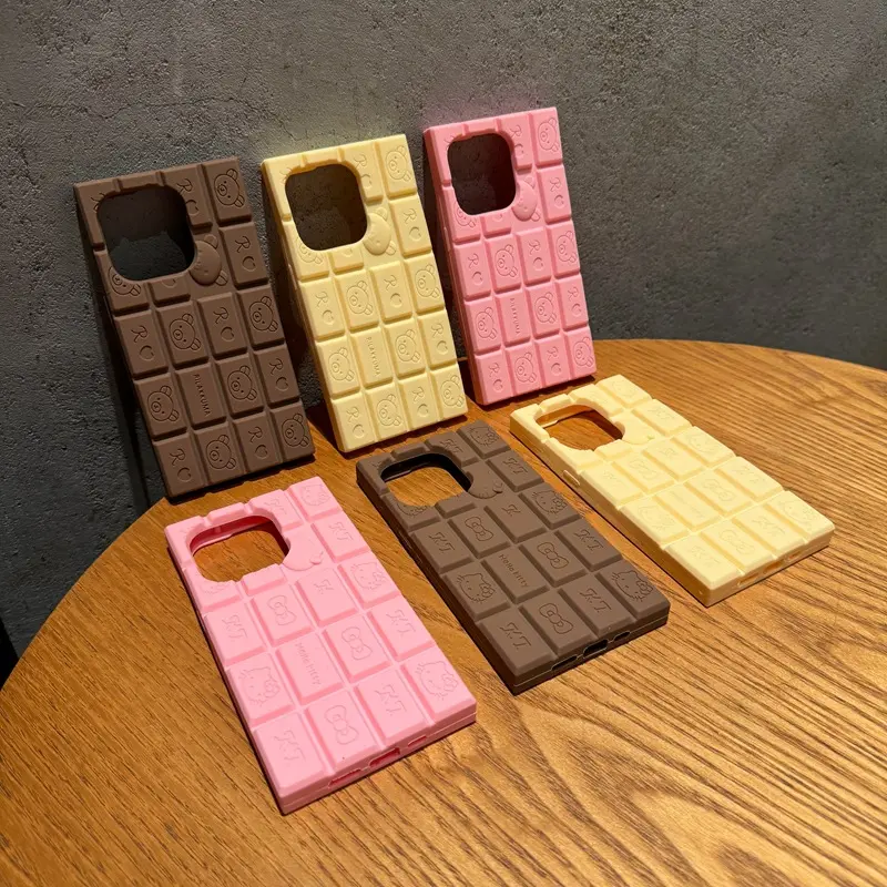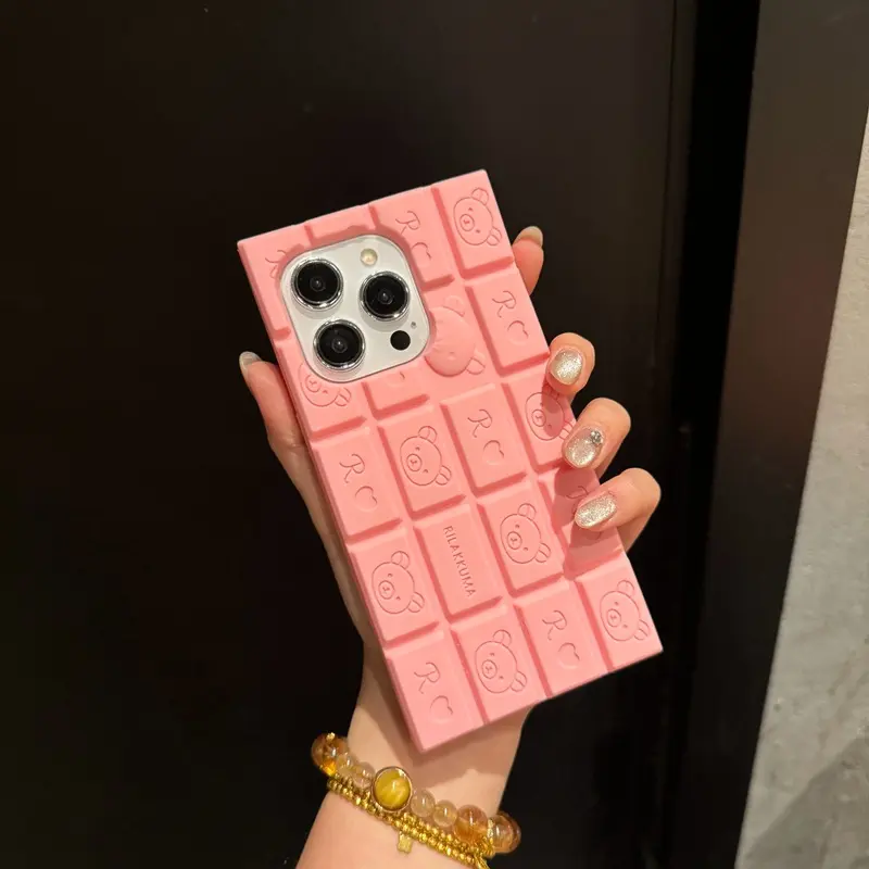 Chocolate-Style Keyboard Design Phone Case for iPhone 16 Pro Max & Apple 15 — Featuring Rilakkuma and Hello Kitty (Silicone)