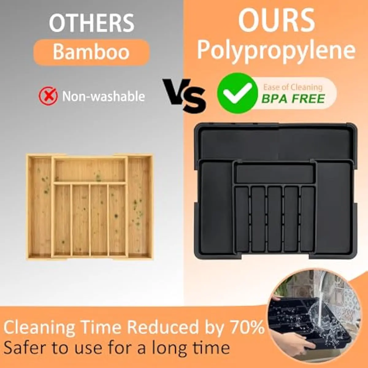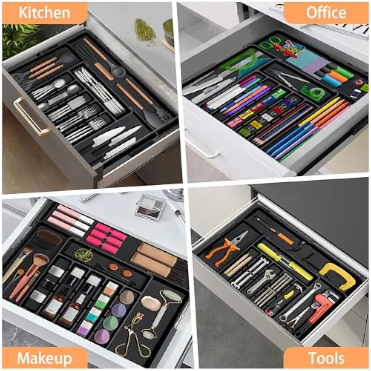 Our utensil drawer organizer is adjustable and expandable, making it versatile for different drawer sizes and storage needs.