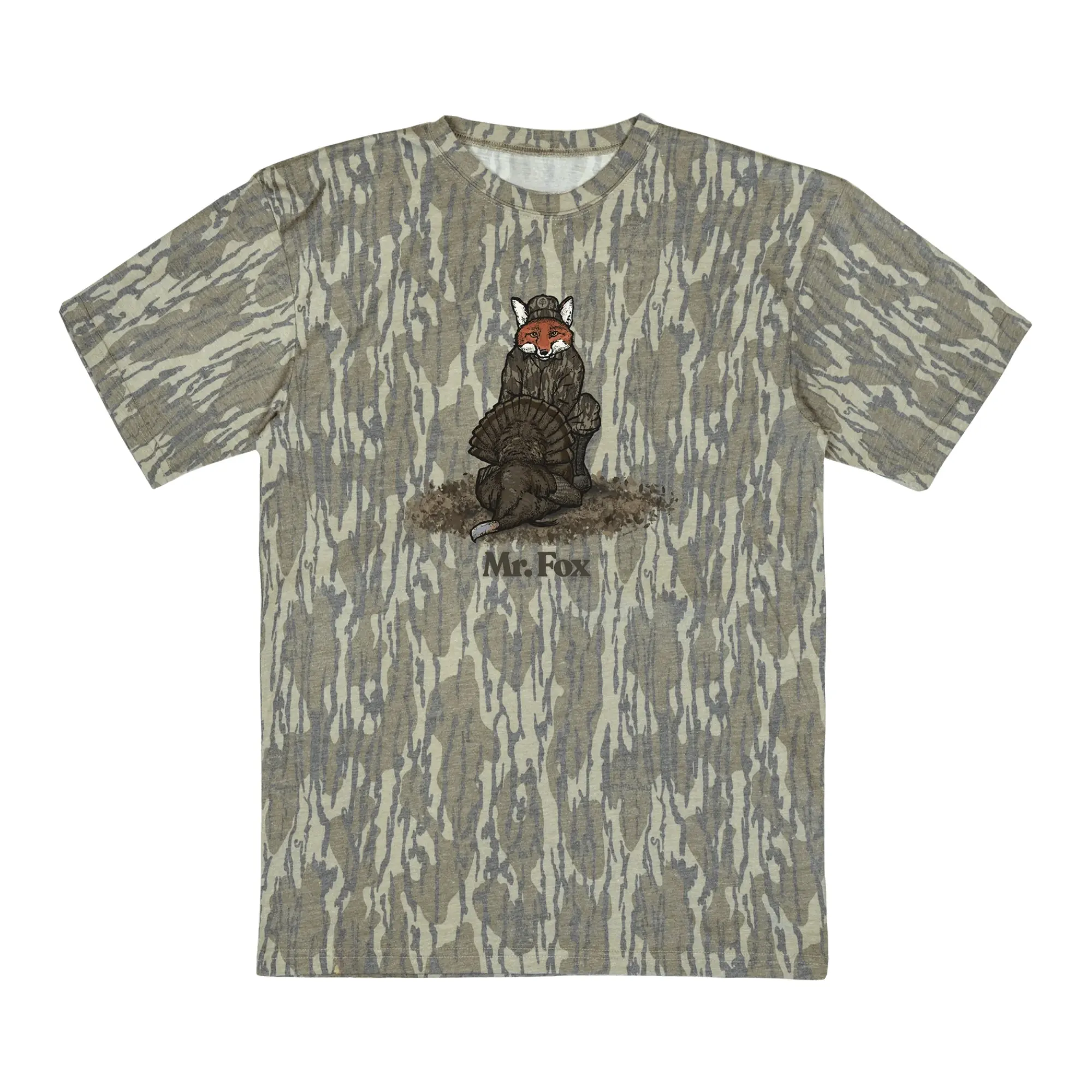 Mr. Fox Turkey Mossy Oak Tee, Mossy Oak Outdoors Bottomland T-shirt, Camo Pattern Crewneck, Hunting Camo Tee For Men And Women