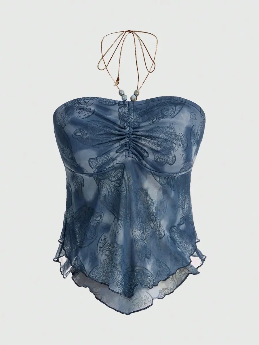 SOLEMN Hippie Paisley Print Ruched Halter Top
