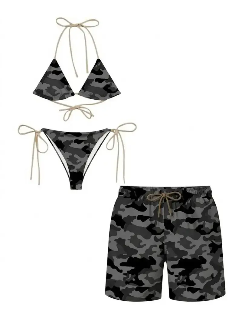 Matching Couples Swimwear Set – Women’s Triangle Bikini & Men’s Floral Swim Trunks Beach Outfit