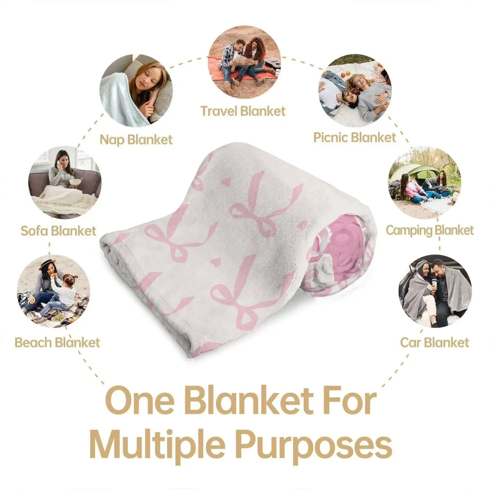 5. Pink Romantic Ballet Bow Alphabet Flannel Blanket, Soft Lightweight Multi-Use Throw for Car, Home, Library, Office & Nap, Ideal Housewarming Birthday Christmas Gift