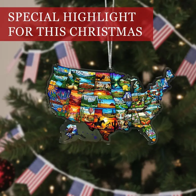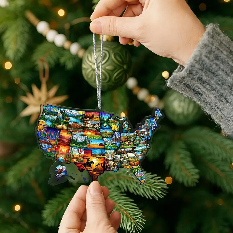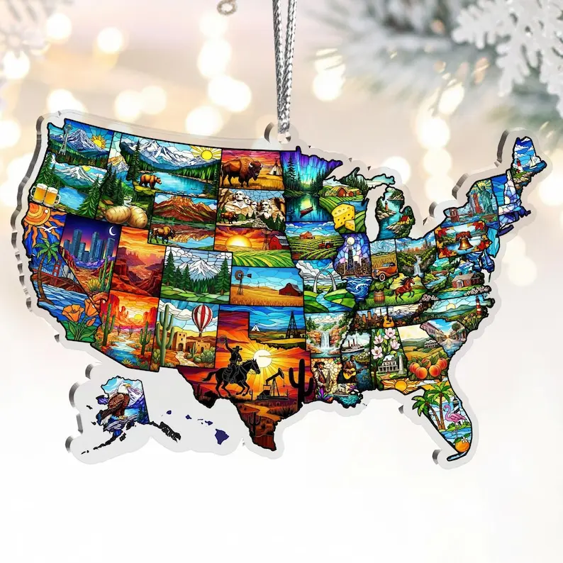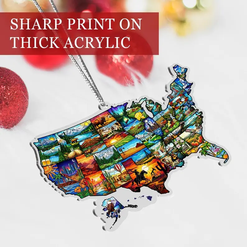 Crafted from premium acrylic, this ornament features vibrant colors and crisp details that bring the American landscape to life. Whether displayed on a Christmas tree, hung in a window, or added to a travel-themed décor collection, it serves as a meaningful reminder of unforgettable journeys and destinations.