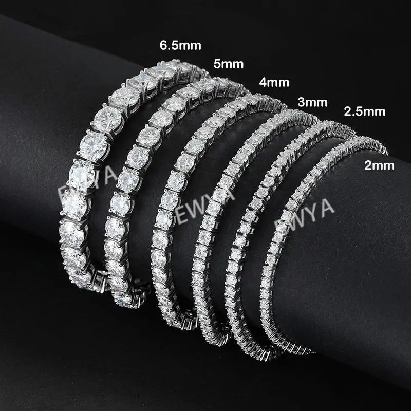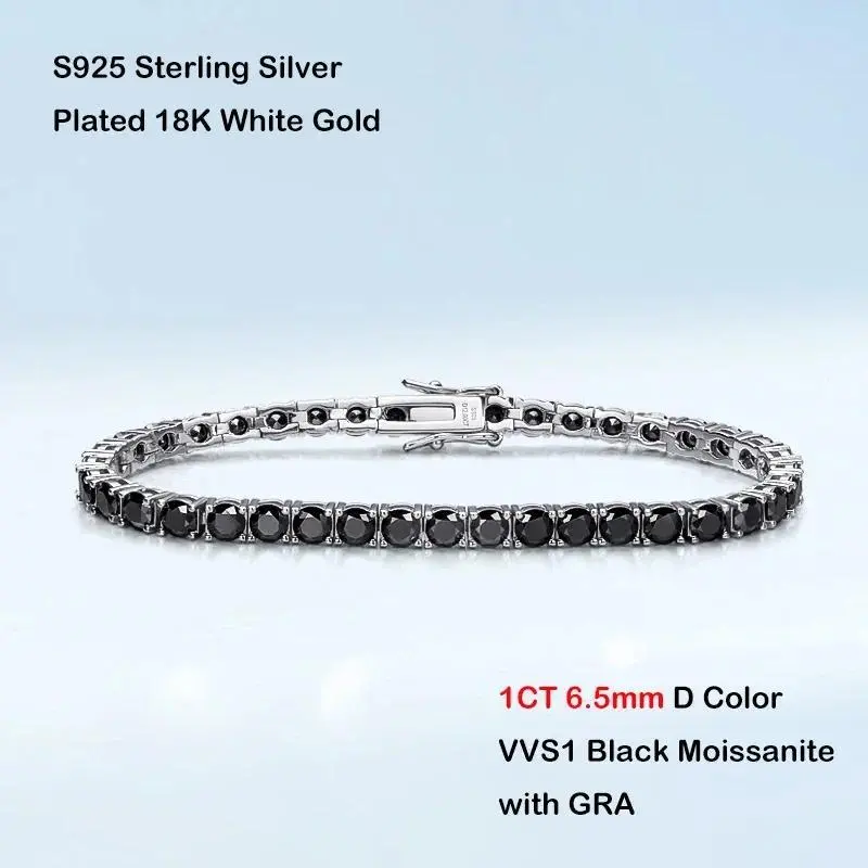 EWYA GRA Certified Real 3/4/5/6.5MM Full Black Moissanite Tennis Bracelet for Women Men S925 Silver Link Bracelets Fine Jewelry