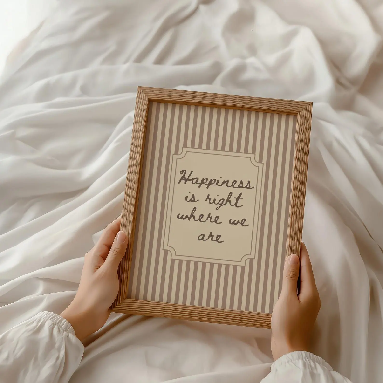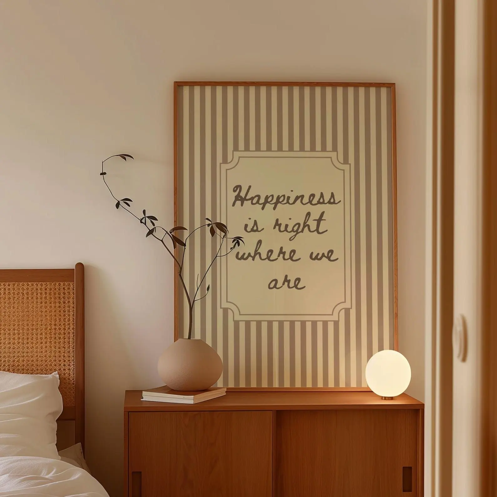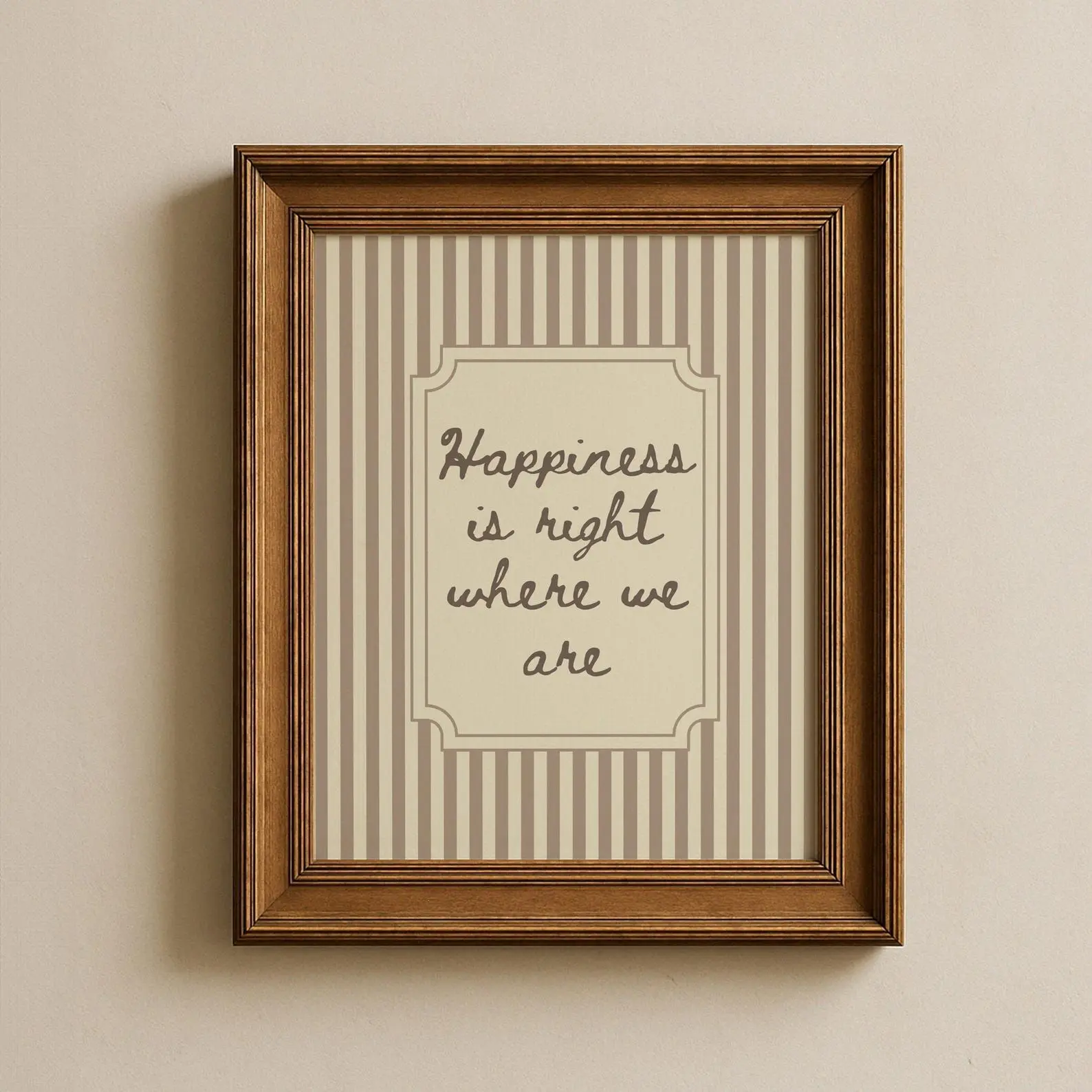 5. Happiness Print Loving Quote Print Neutral Striped Modern Vintage Wall Decor