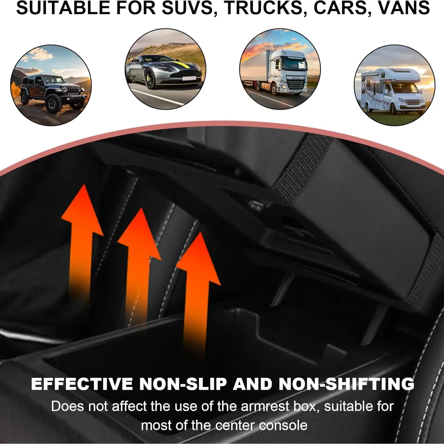 ·【Superior Function】: Our product offers additional storage space for your vehicle, allowing you to store various items easily. It provides you with convenient access to their items and helps maintain a clean and tidy vehicle. Furthermore, it protects the center console armrest box from scratches and friction.