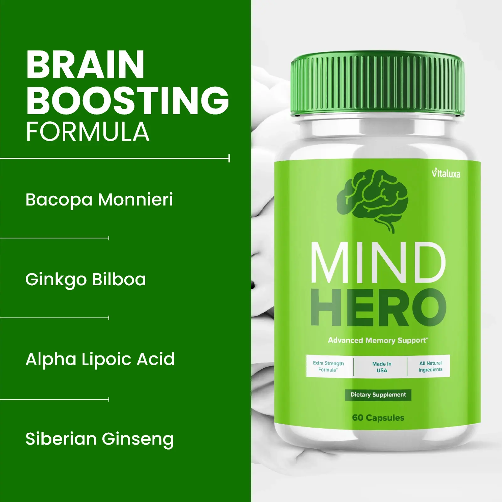 Mind Hero Capsules feature a premium blend designed to support focus, mental clarity, and overall cognitive wellness. This daily formula helps maintain memory, steady energy, and a balanced routine.
