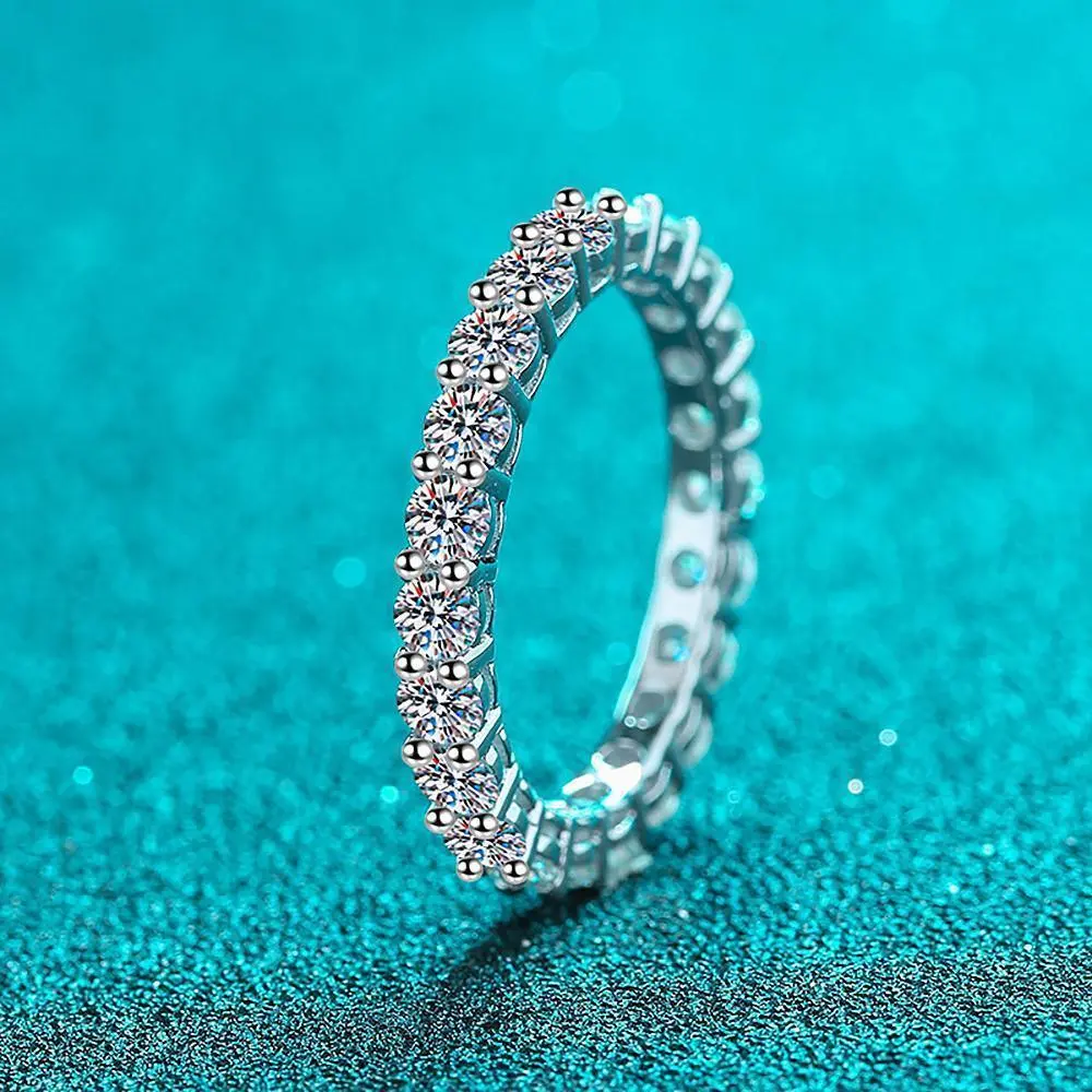FEOBUR 5mm D Color Moissanite Ring with Certificate Women S925 Sterling Silver Full Diamond Wedding Eternity Band Jewelry Gift
