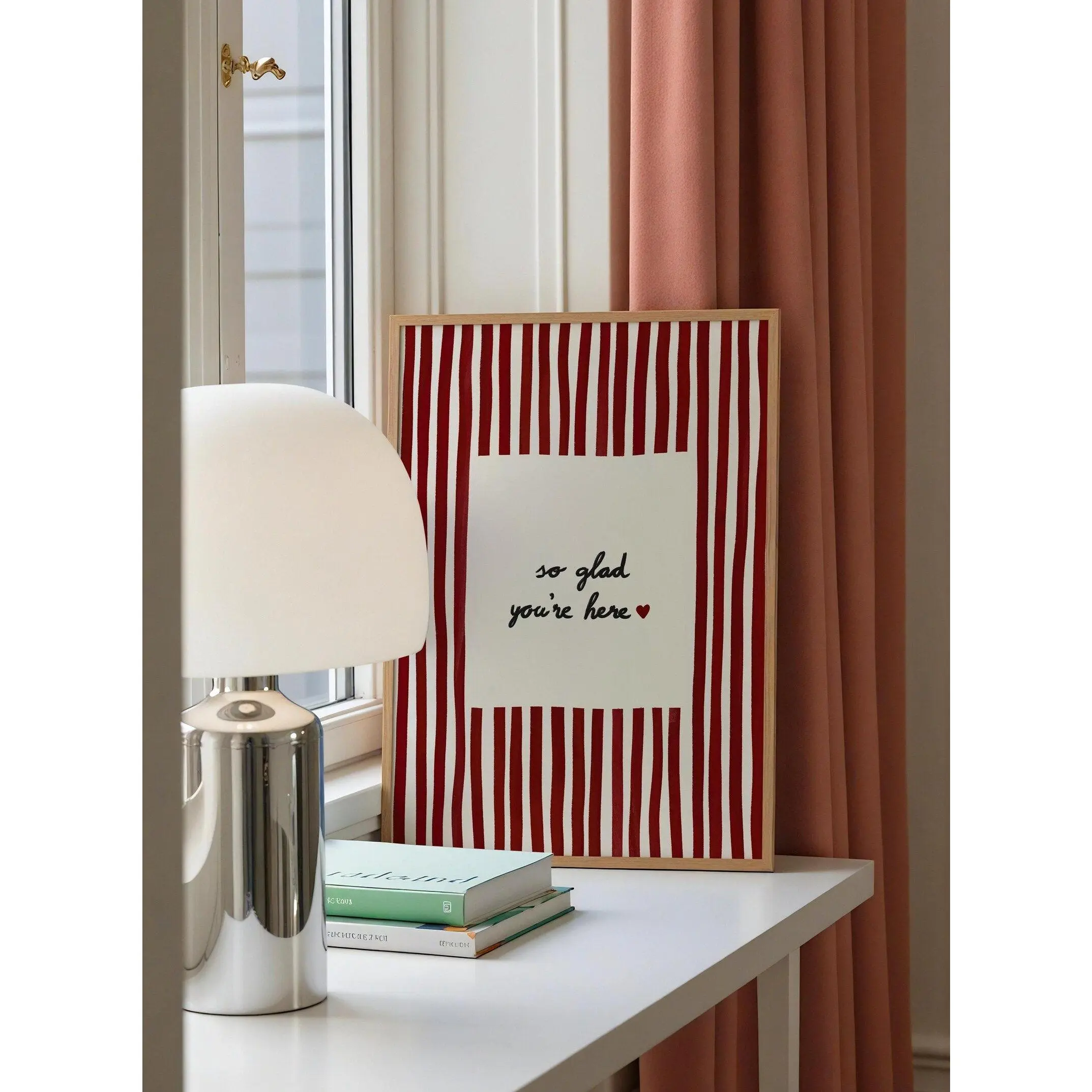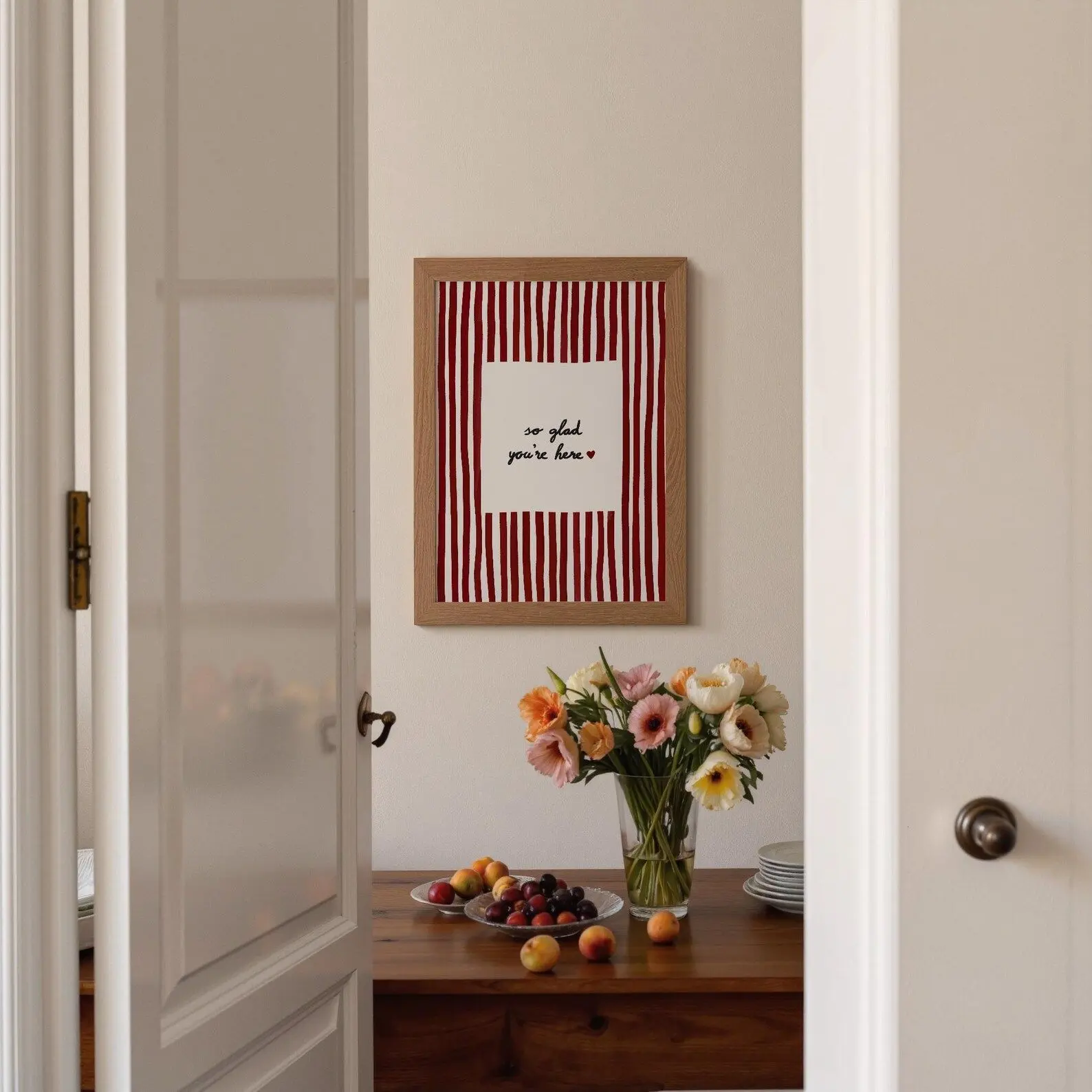 So Glad You're Here Print, Striped Entryway Sign, Living Room Gallery Wall Poster