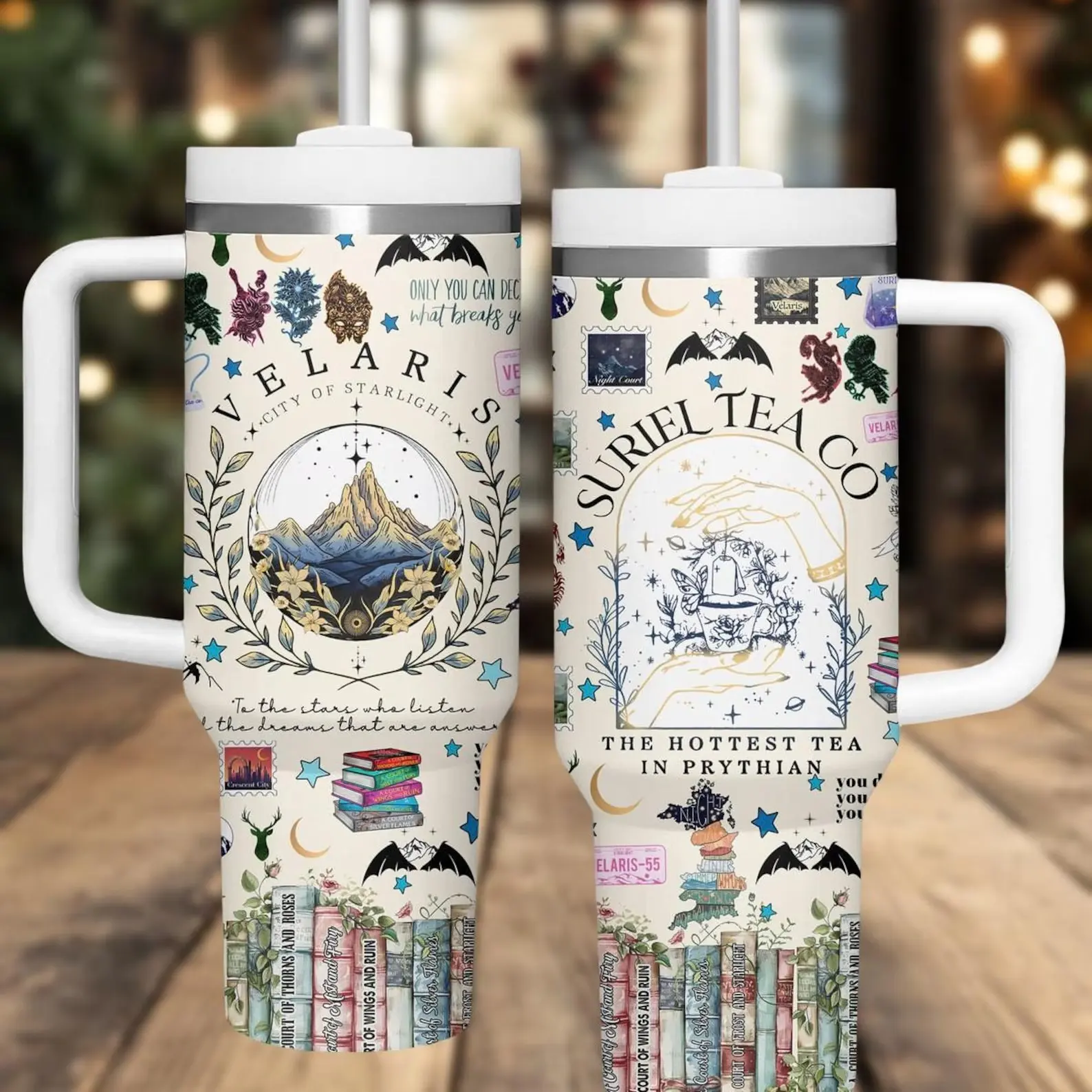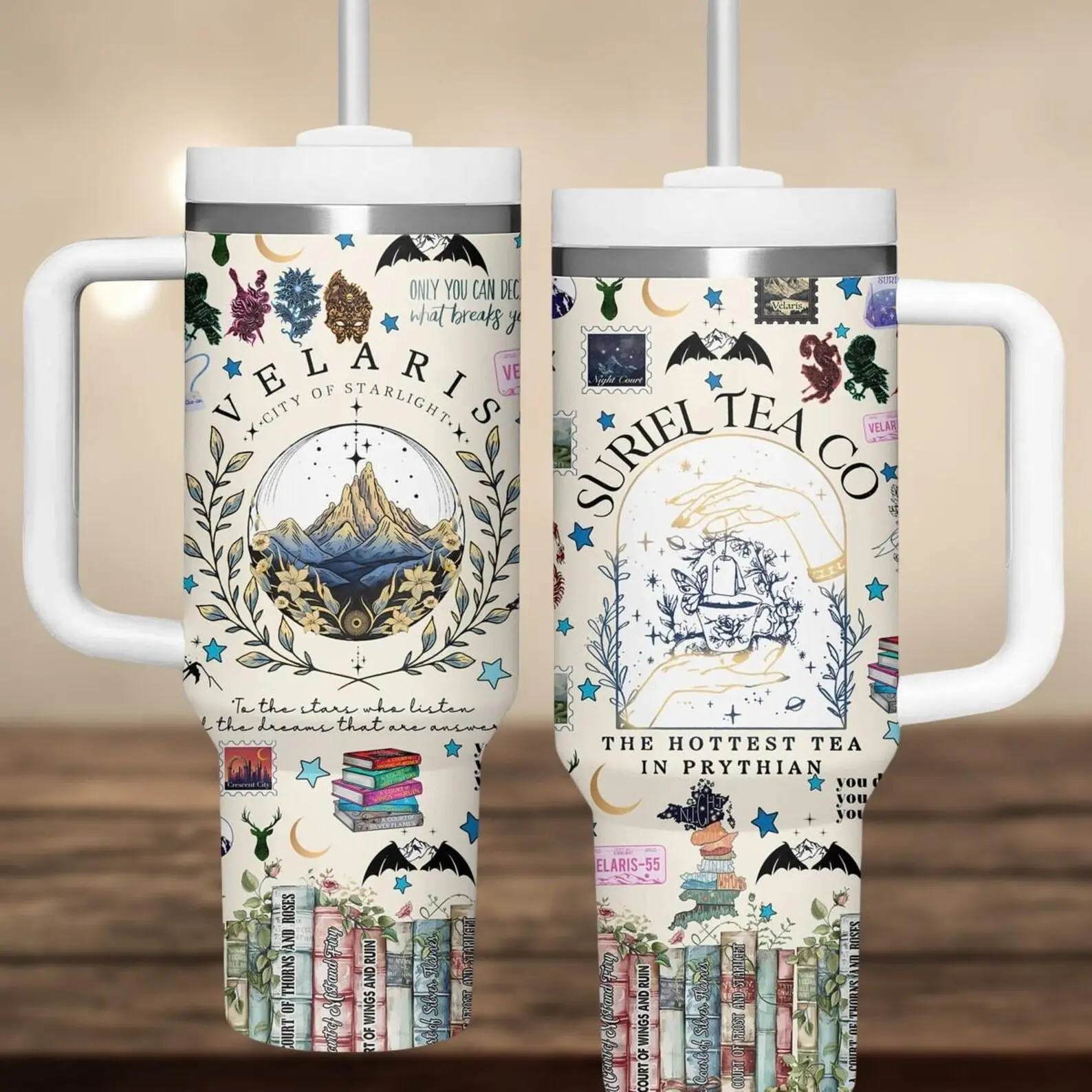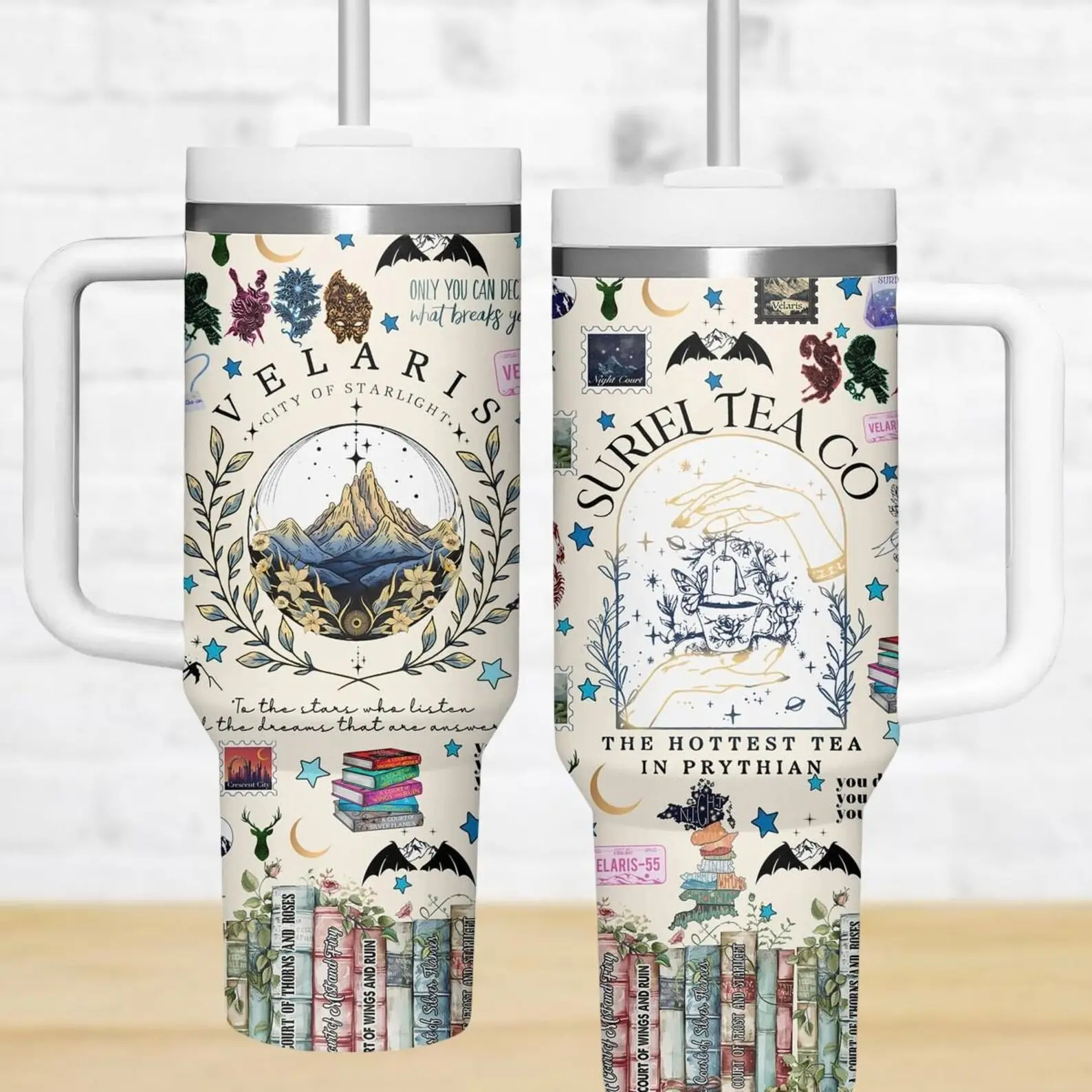 Velaris City of Starlight & Suriel Tea Co 40oz Tumbler - ACOTAR Night Court Merch, Perfect Booktok Gift for Feyre & Rhysand Fans, Gift for Women, Men & Friend on Birthday Party
