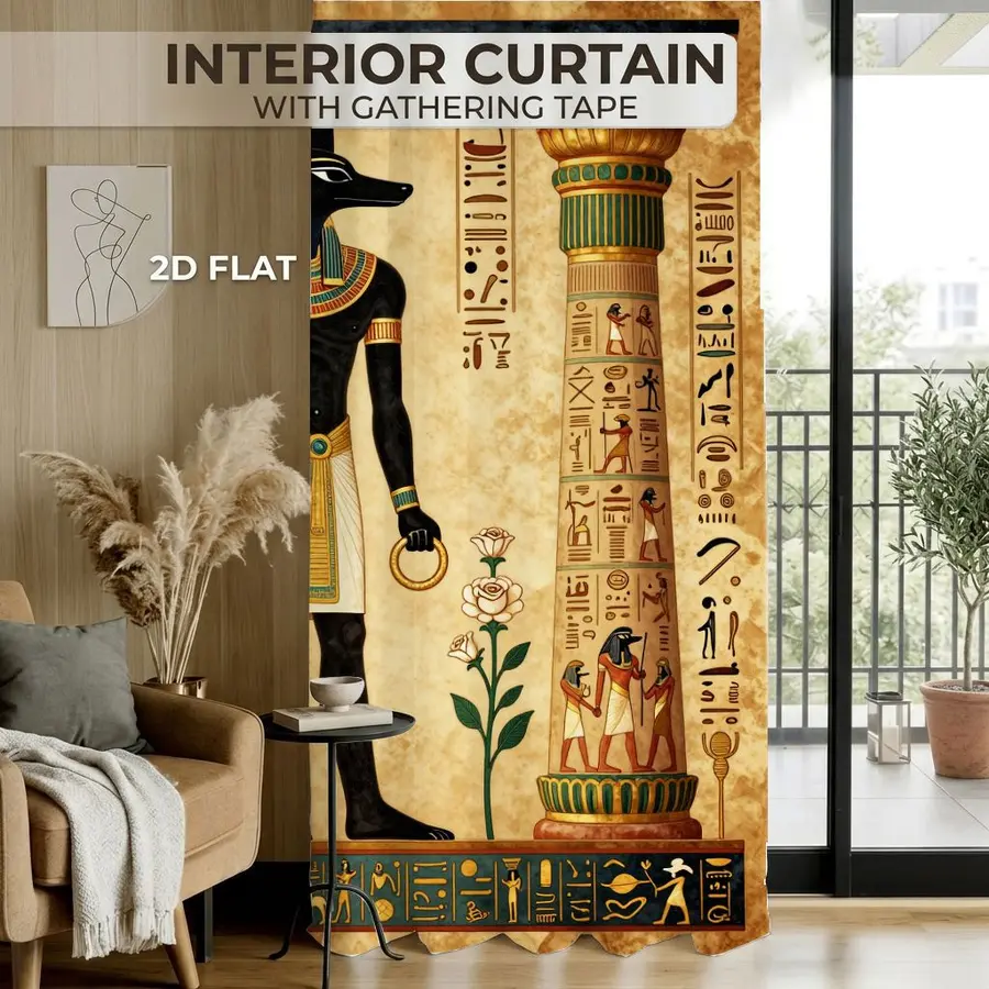 2Pcs Ancient Egyptian Mythology God Anubis Pattern Vintage Sun Blocking Curtains Digital Printed Rod Pocket, Window Treatment For Bedroom Office Kitchen Living Room Study Home Decor