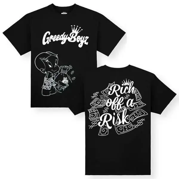5. GreedyBoyz T-shirt - Casual Cotton Unisex Short Sleeve T-shirt with "Rich off a Risk" Design - Machine Washable - All Seasons - Classic StyleNovelty Graphic T Shirt funny tshirt Undershirts Tees Casual Streetwear Classic Plain Men's Women Cotton Moisture