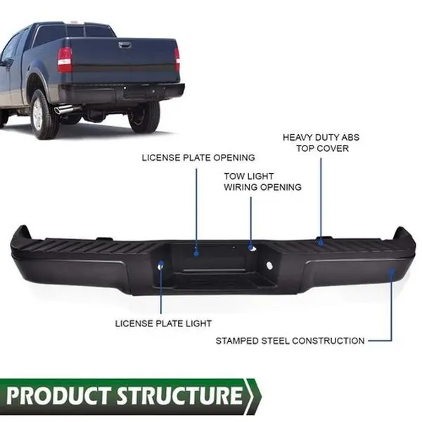 Black - Complete Rear Steel Bumper Assembly Fit For 2009-2014 Ford F150 Truck