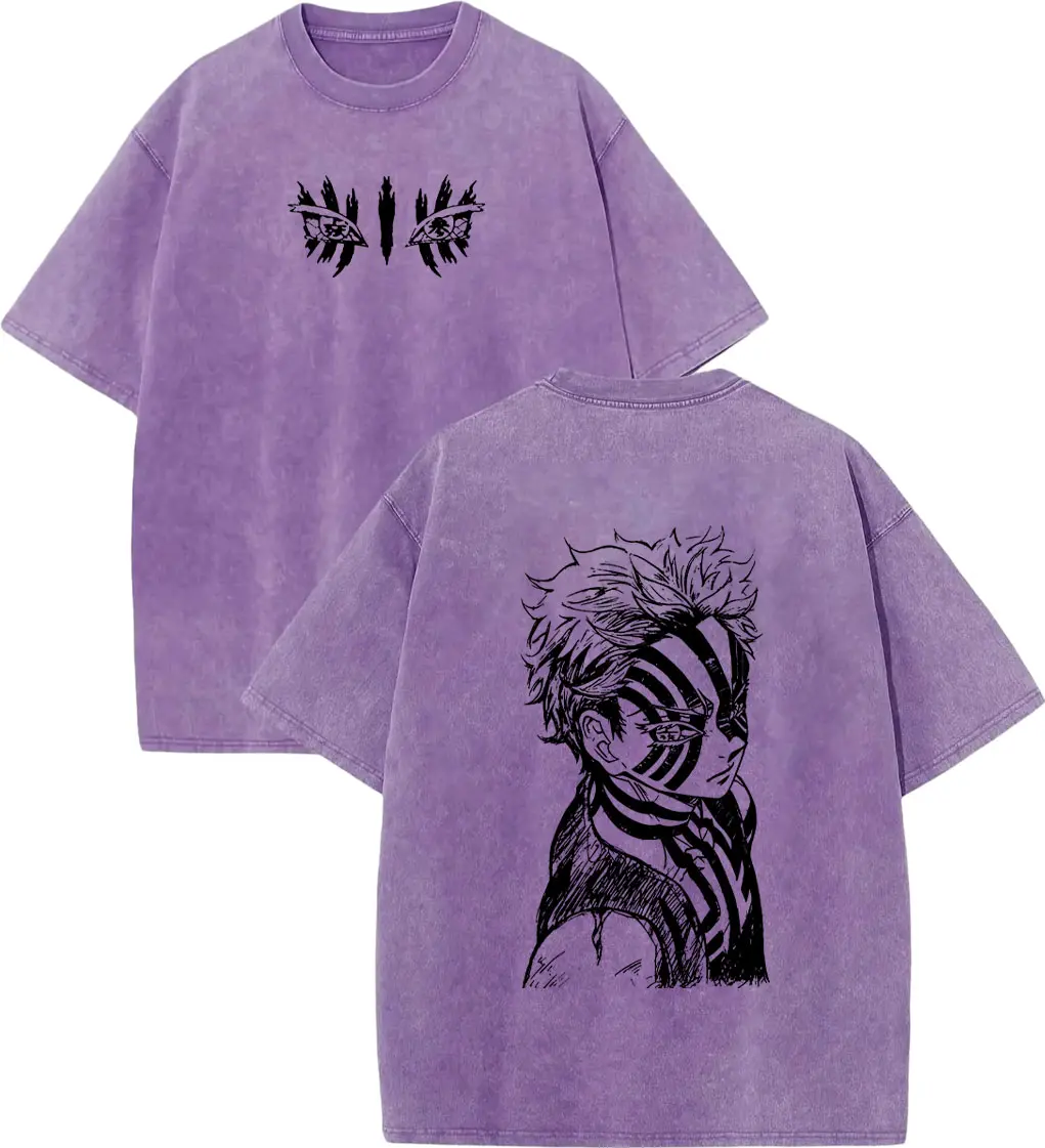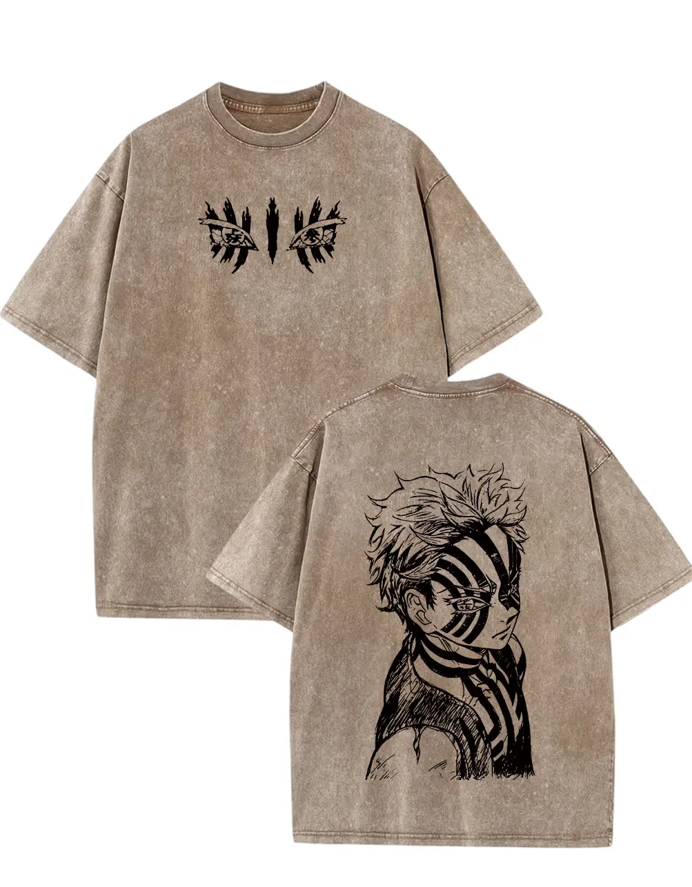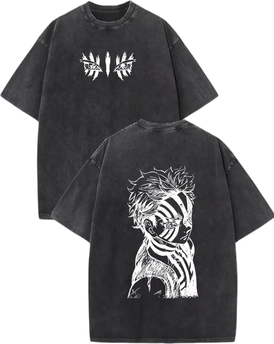 Rep the iconic Demon Slayer character Akaza (), Upper Rank Three of the Twelve Kizuki, with this stunning vintage-style battle portrait tee! Featuring a striking, high-contrast illustration of Akaza on the back, paired with his iconic demon mark eyes on the front. This shirt captures the raw, legendary energy of one of the strongest Upper Rank demons in Demon Slayer history. Ideal for Demon Slayer stans, anime fans, or anyone who loves vintage anime streetwear.