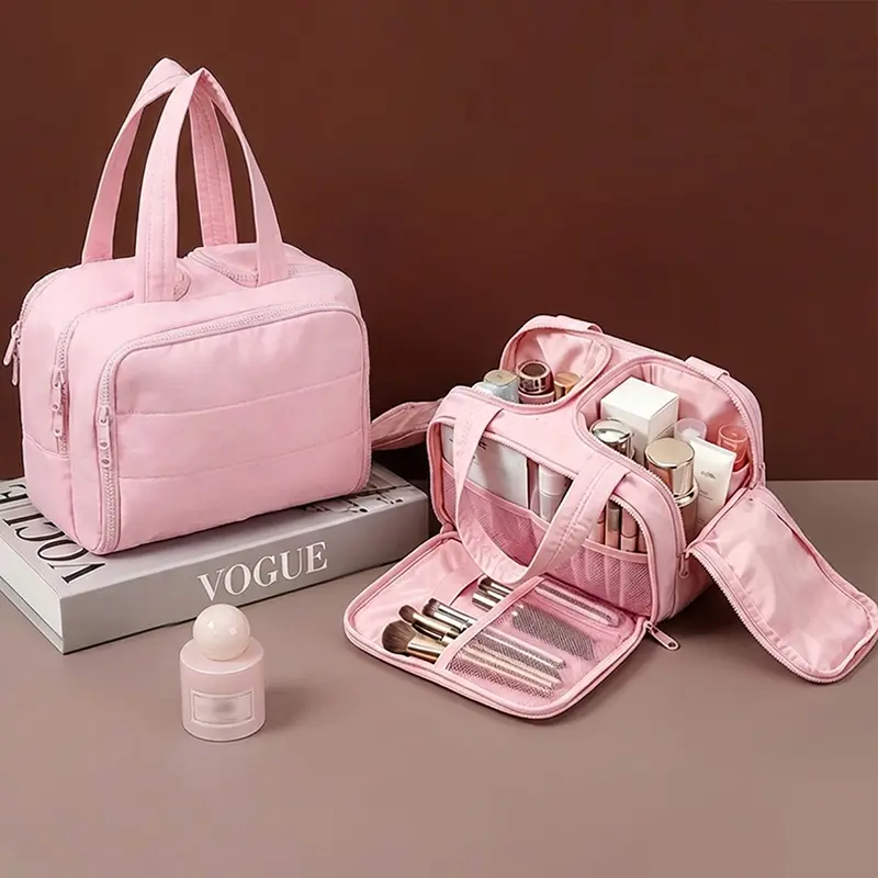 Our soft quilted makeup bag is made for you—blending cozy aesthetic vibes with smart, functional design. It’s the only organizer you’ll need for daily touch-ups, weekend getaways, or long-haul trips.