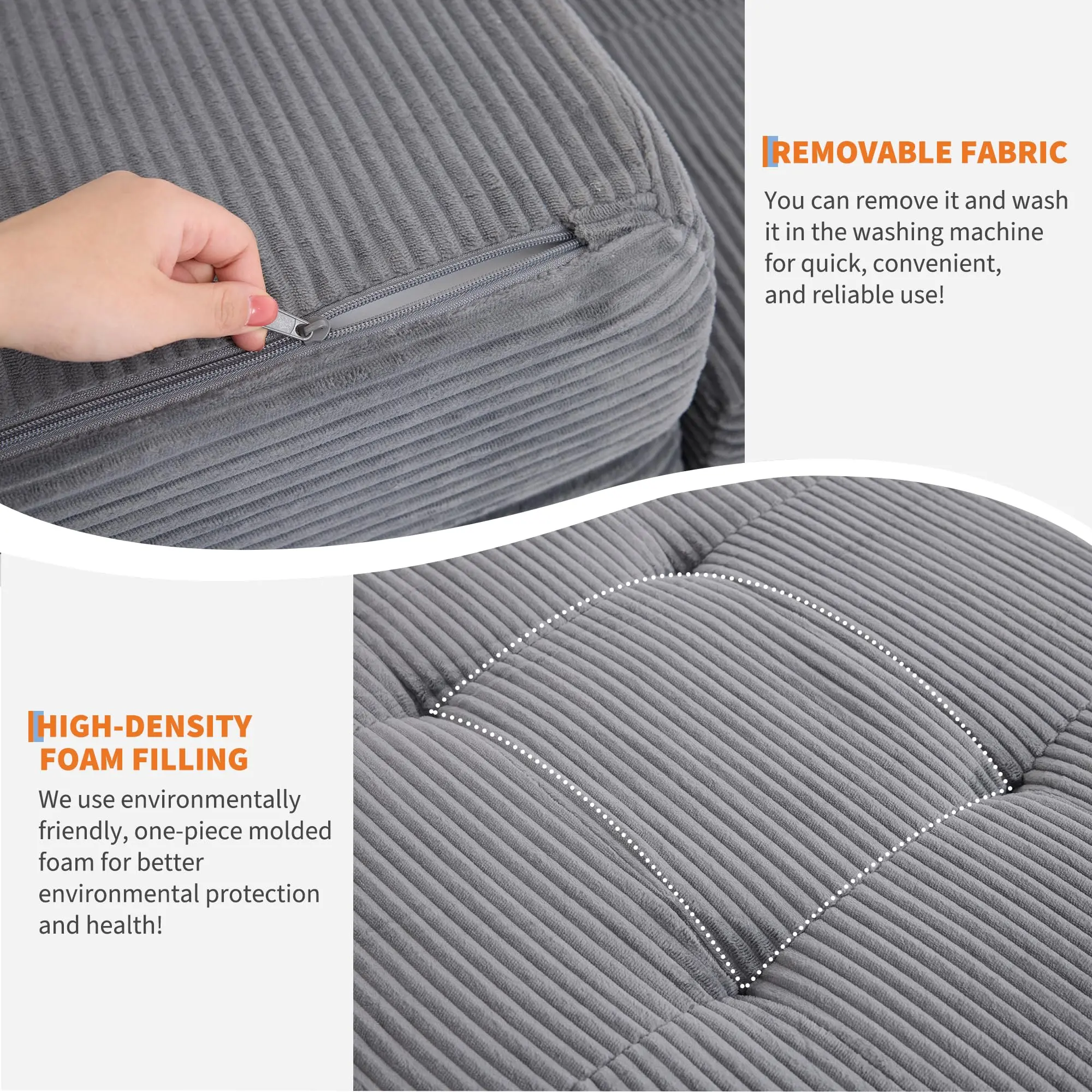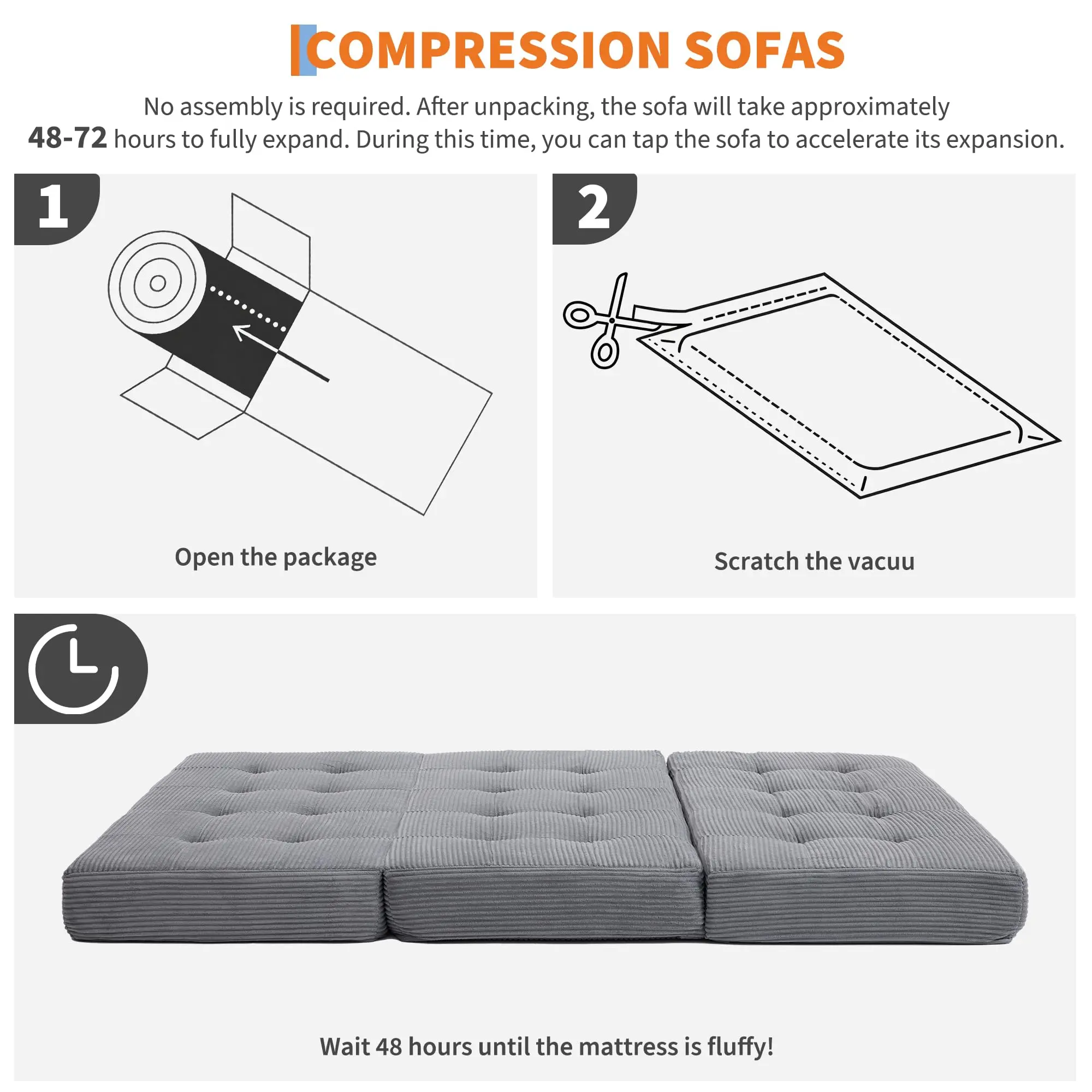 5. Garvee 6-Inch Tri-Fold Mattress with High-Density Support Foam, Foldable Floor Sofa Bed, Soft Corduroy Fabric, Tufted Design, Portable Guest Bed for Camping, Dorm, Living Room, Grey, 75" x 54.3"