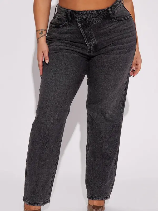 Ribbon Lace Up Low Rise Straight Leg Jeans