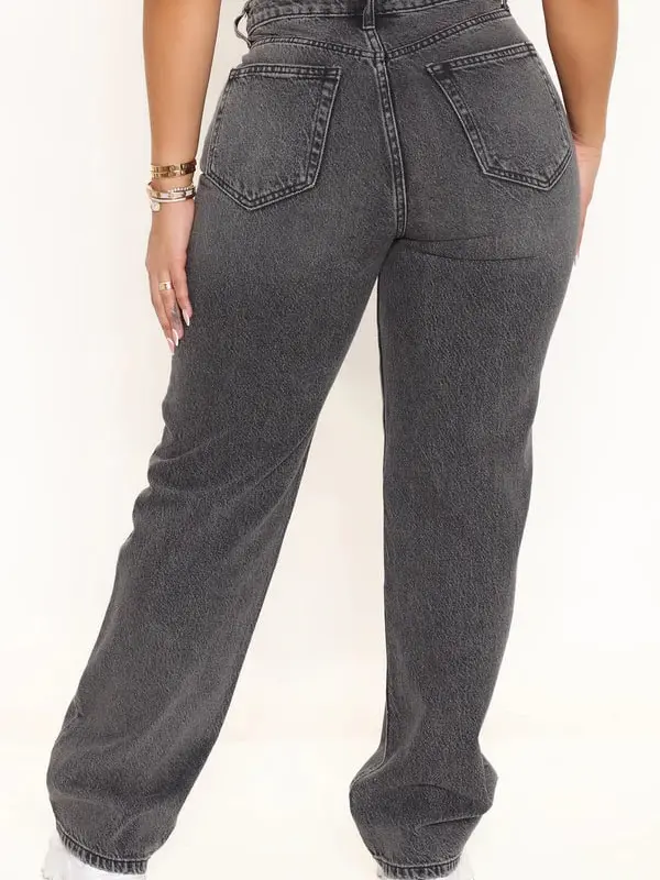 Frayed Seam Washed Low Rise Straight Leg Jeans