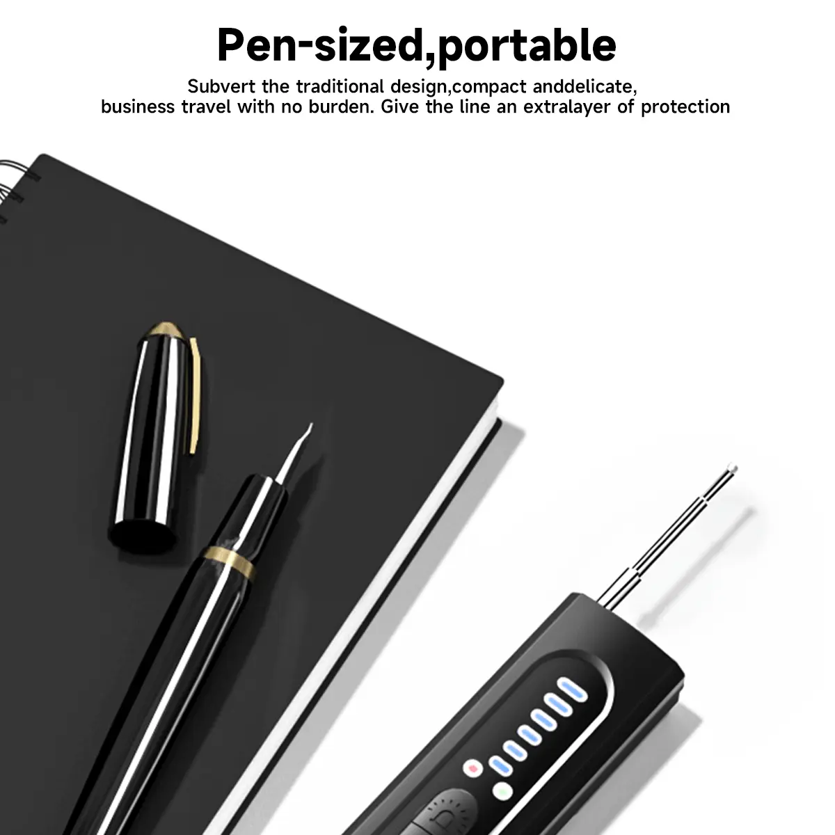 【Lightweight and portable】:Anti-spy camera detector made of advanced PC material with advanced smart chip design, small in size (24*108*15(mm)) and light in weight (20g), Camera detectors are usually compact in size and easy to carry.