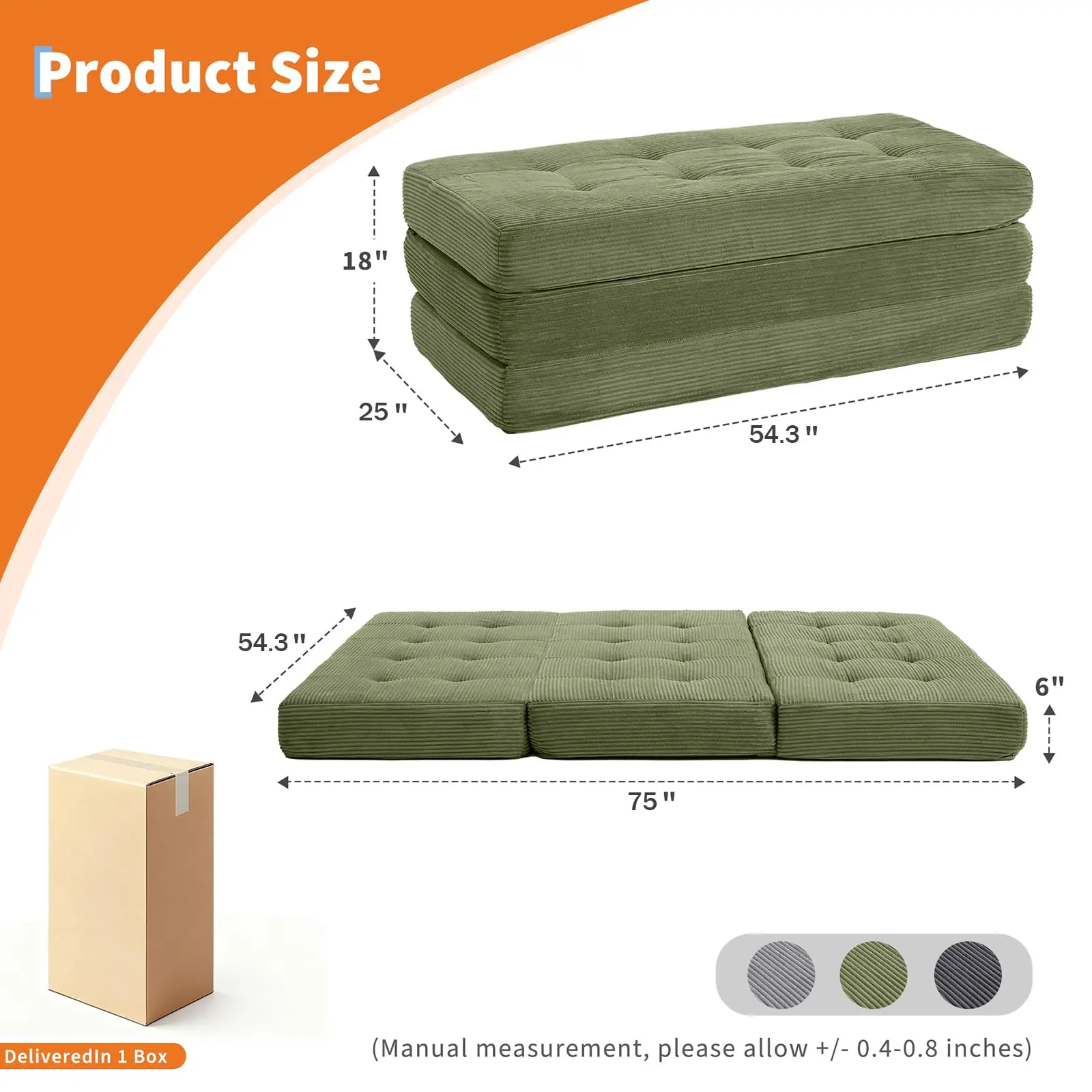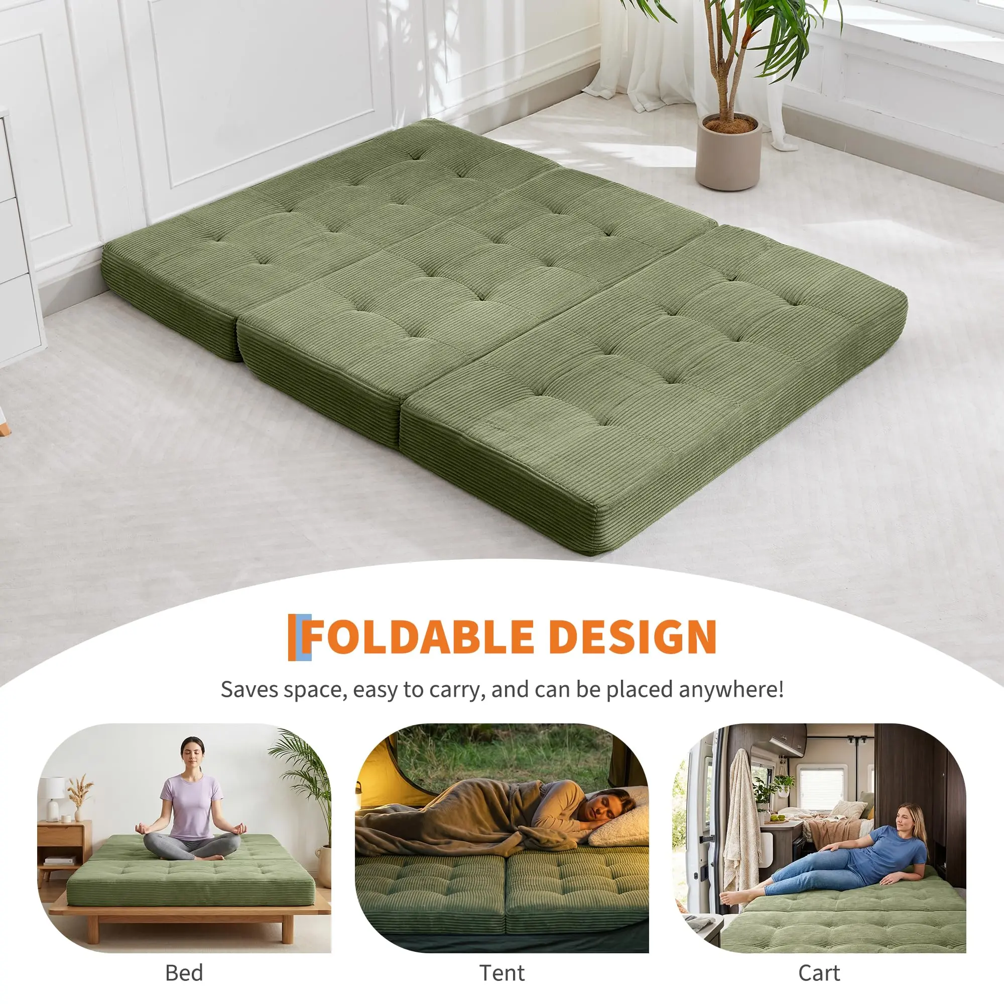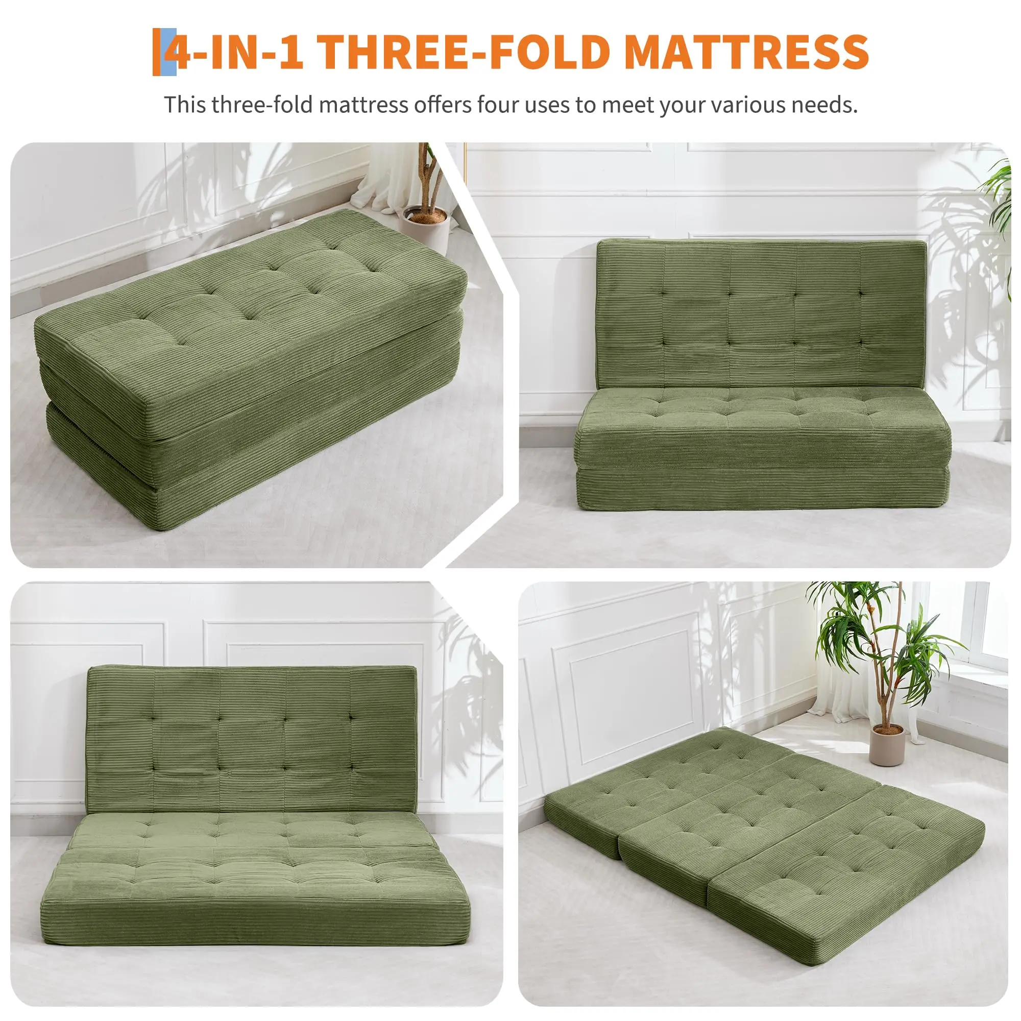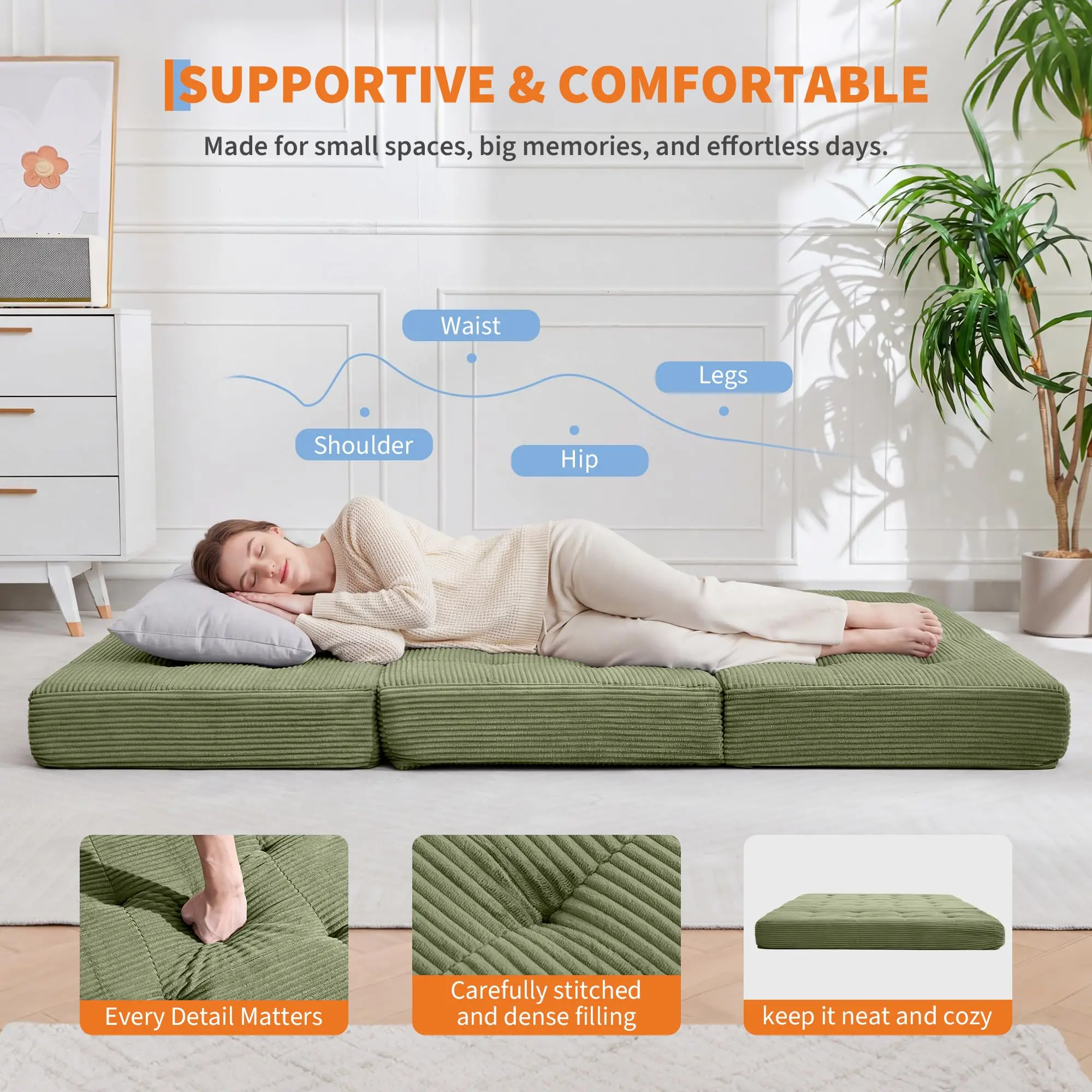 · Versatile 4-in-1 Design: Instantly transforms from a full-length sleeping bed into a cozy floor sofa or lounging mat. Perfect for overnight guests, movie nights, reading, or yoga. The tri-fold mechanism makes setup and storage quick and effortless, ideal for small apartments, dorm rooms, or guest bedrooms.