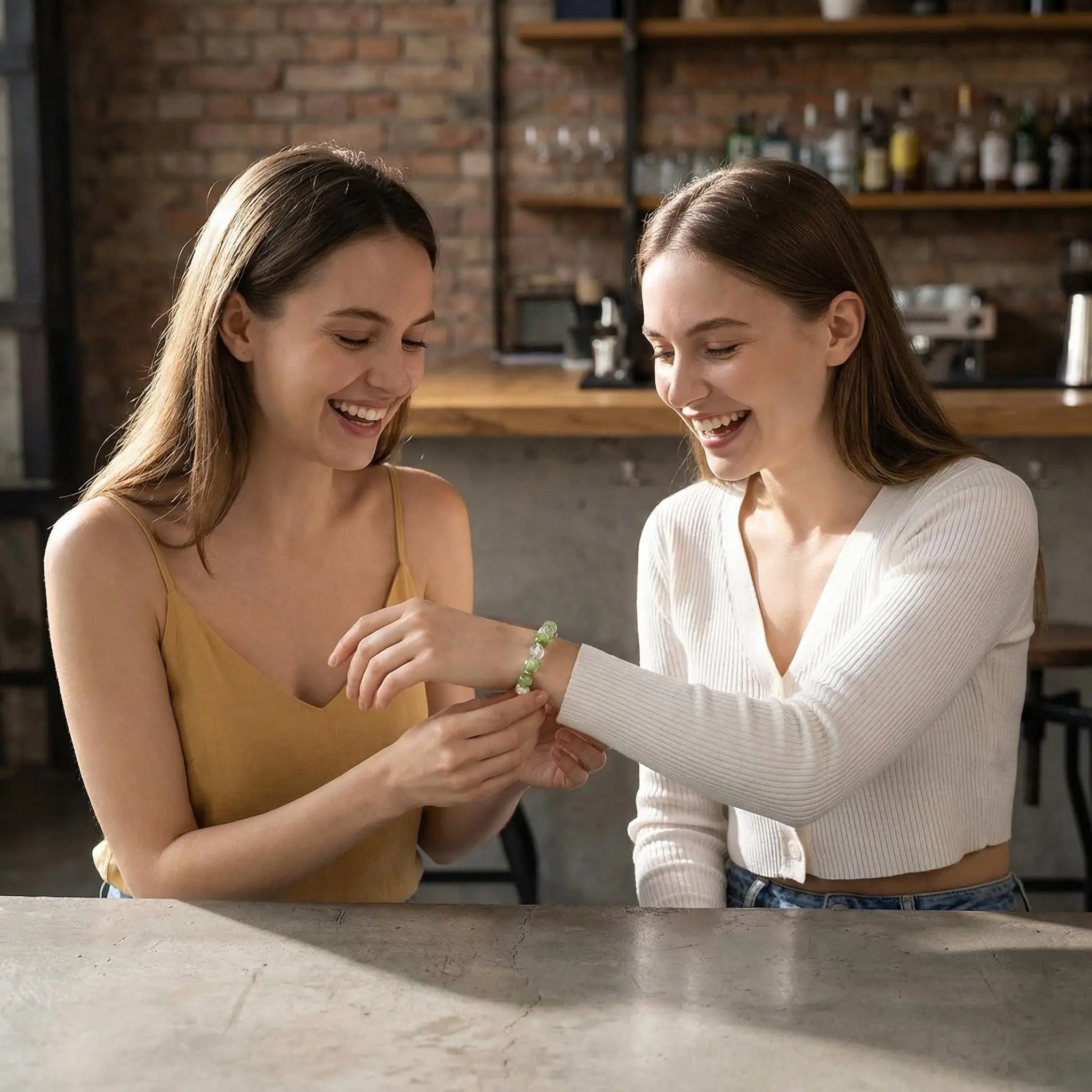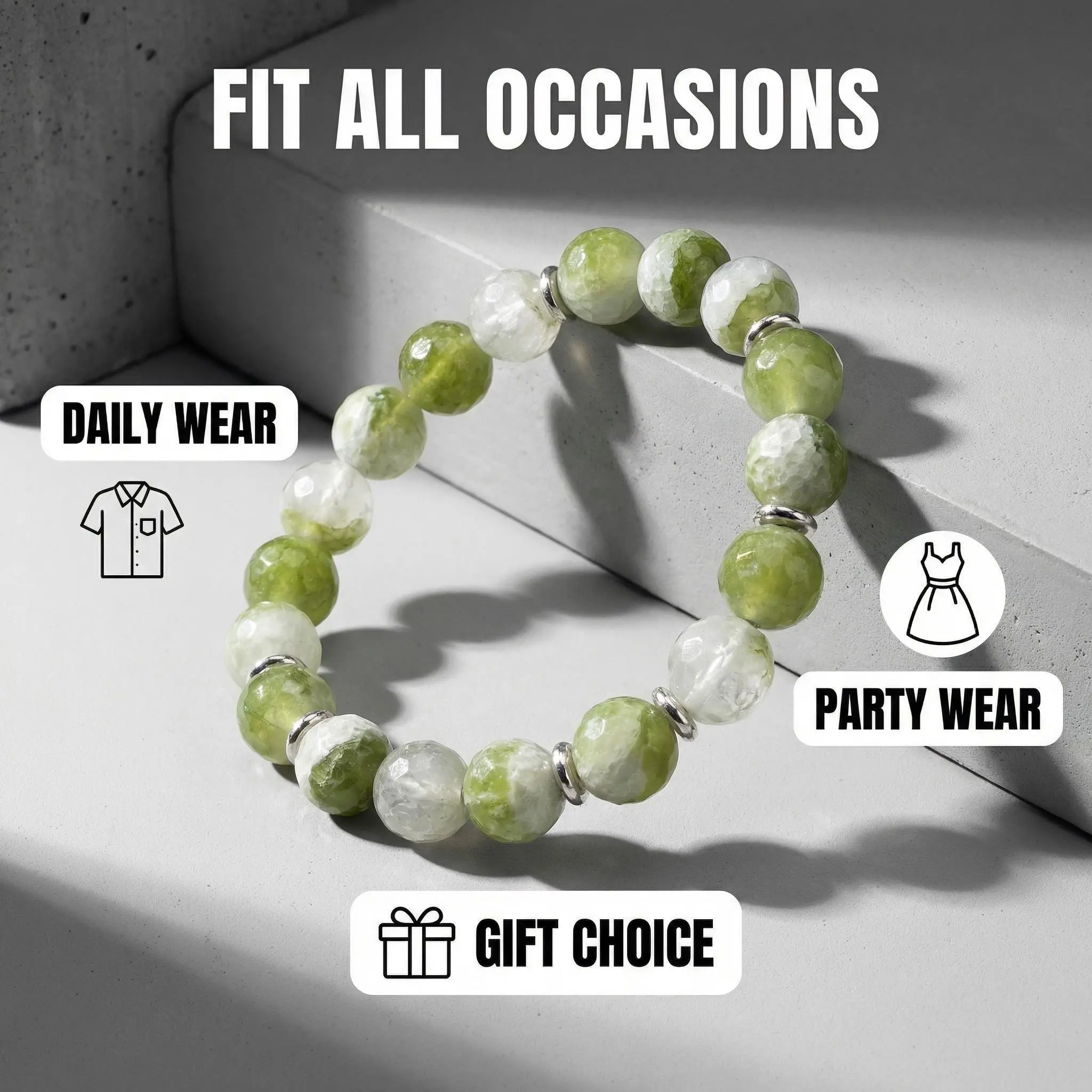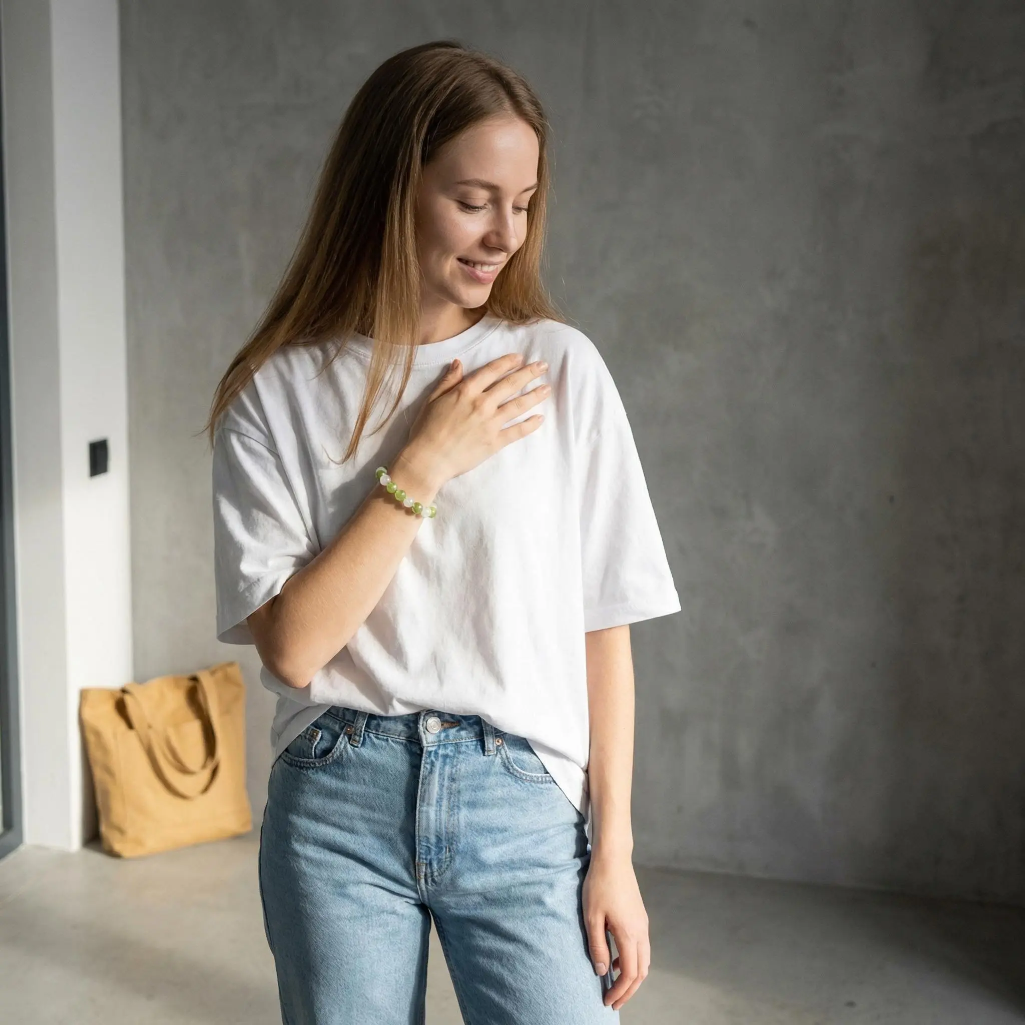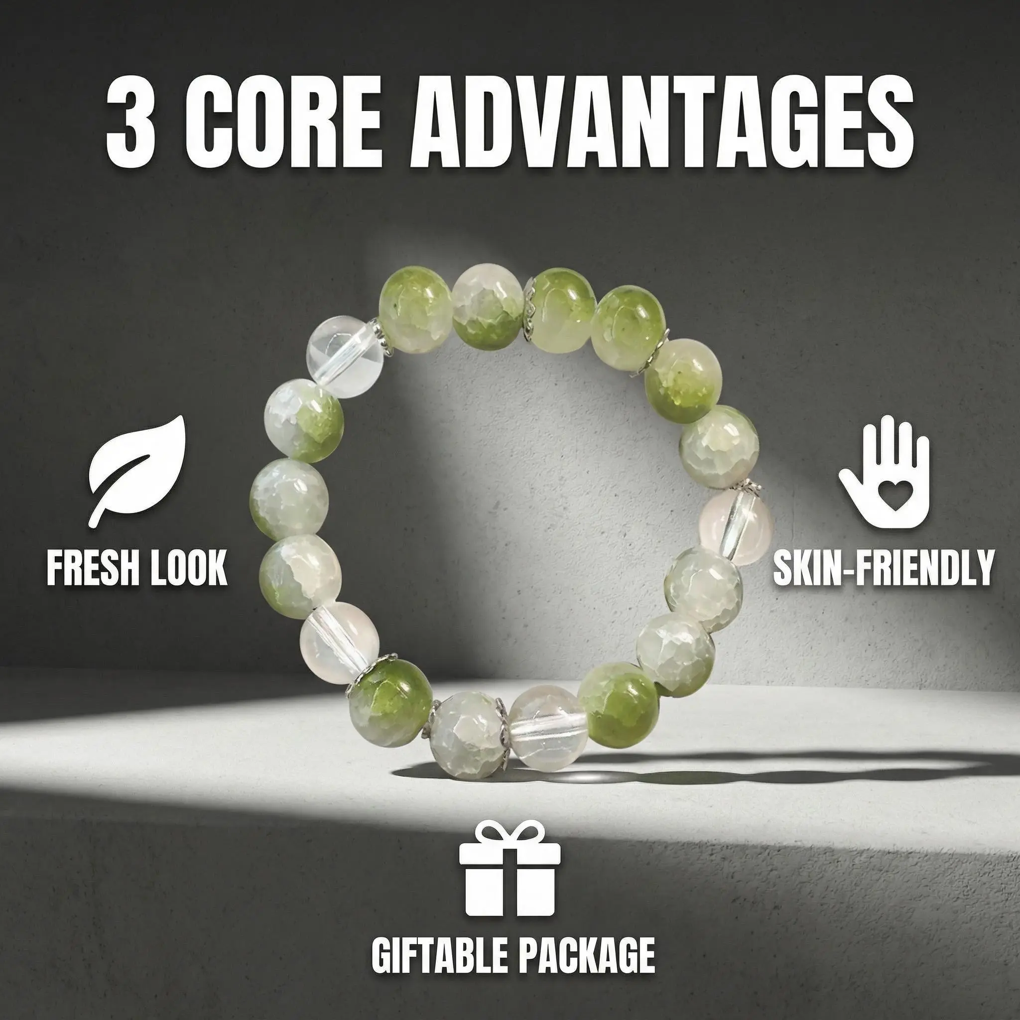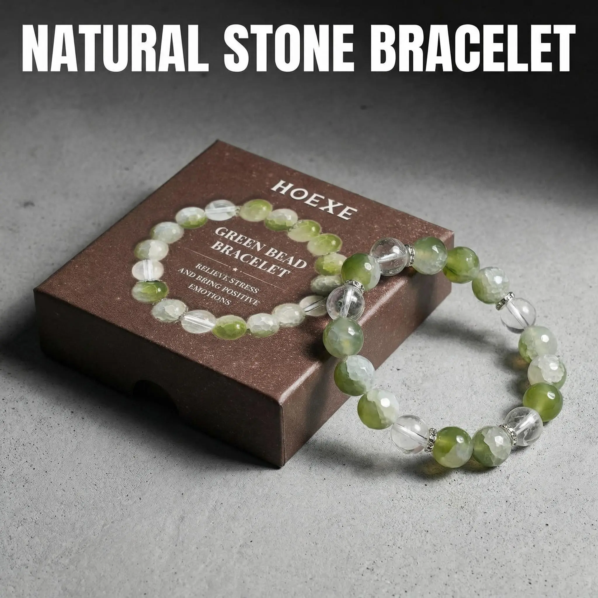 Our green beaded bracelet contains glass. It can relieve stress from work and daily life, calm your emotions, reduce anxiety, and bring positive feelings. It is very easy to use: simply wear the bracelet on your wrist. It features bright green beads, is fashionable and versatile