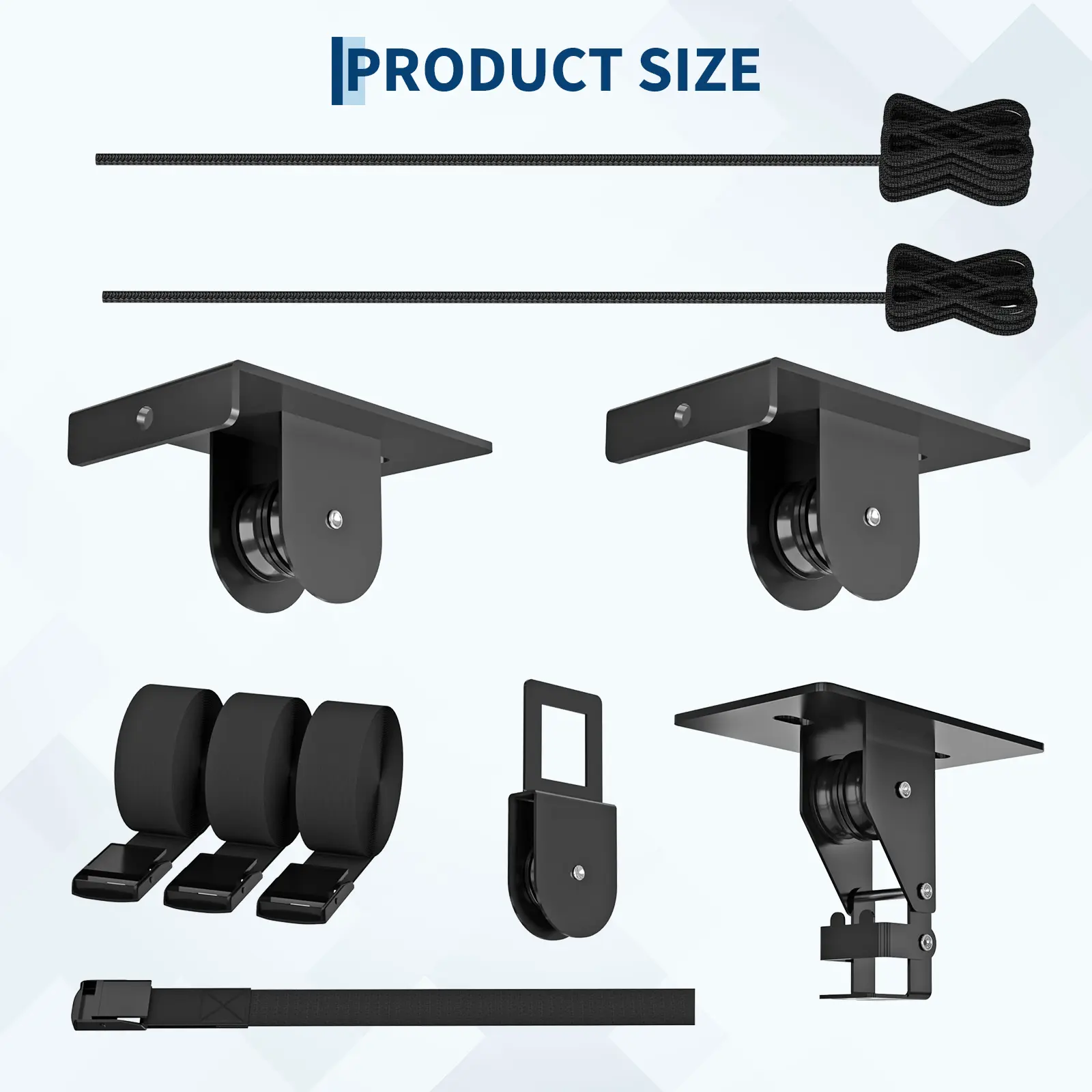 ·Quality Hardware: All components, from black steel mounting brackets to heavy-duty ropes and 20 m cord, are engineered for strength and durability, ensuring years of dependable overhead storage.