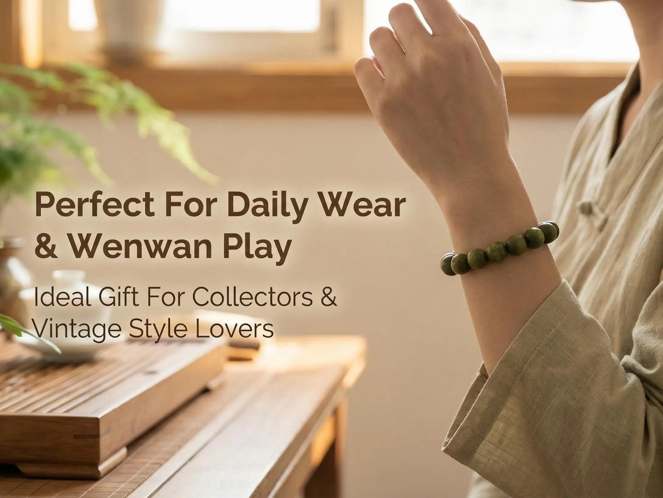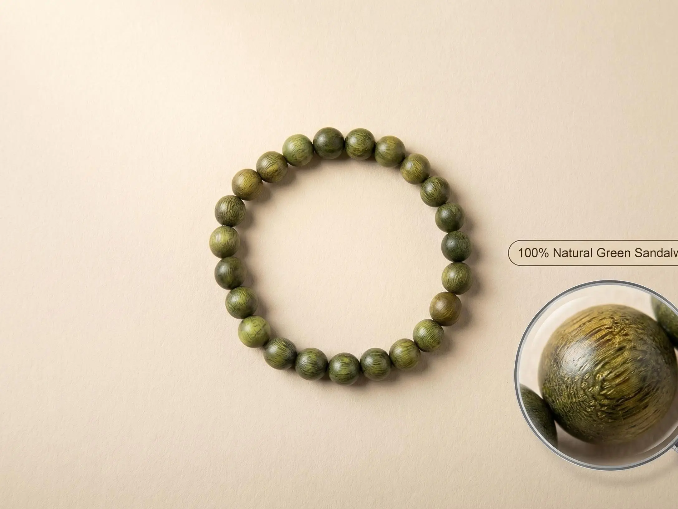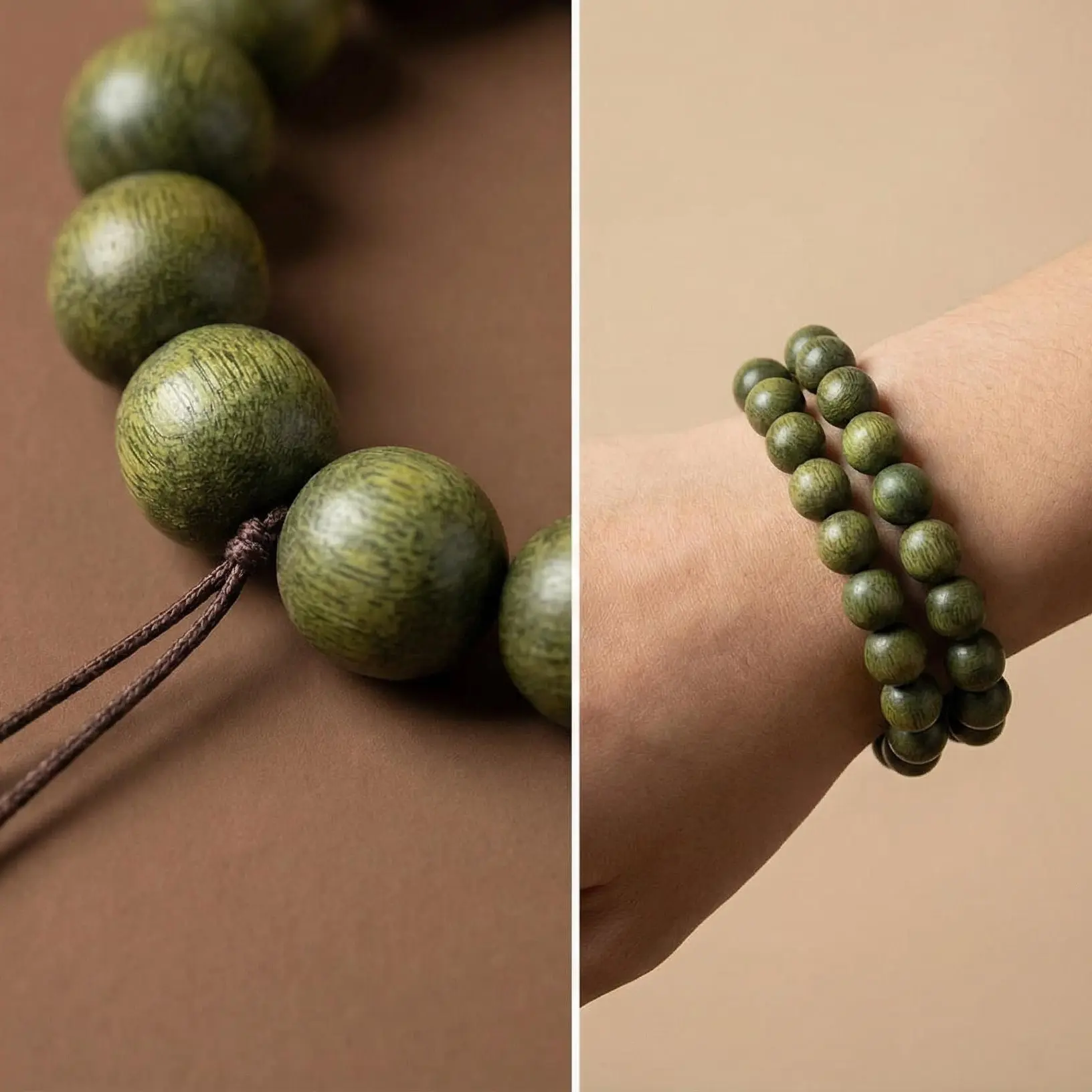 Our green sandalwood bracelet contains green sandalwood. It can be regarded as a symbol of peace and balance, suitable for meditation and relaxation. Wearing this bracelet can bring good luck. Its usage is very simple: just wear it on your wrist. It is also delicately designed and compact, suitable for daily wear. It is not only stylish but can also serve as an amulet to protect you from harm