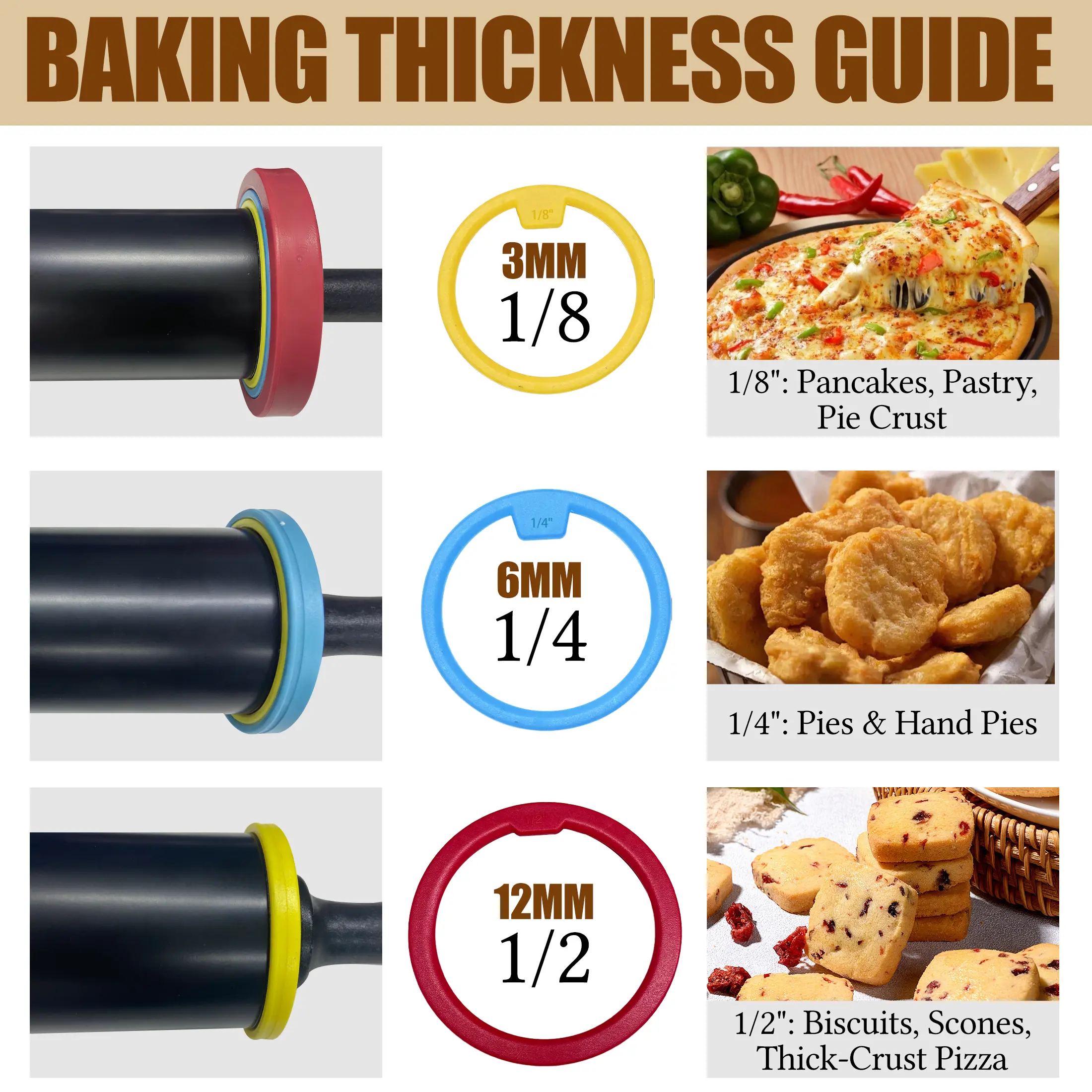 This rolling pin is a must-have for any baker. Use it for various dough types, from pizza to cookies. The adjustable feature allows you to tailor the thickness, making it a flexible tool in your kitchen. Enjoy baking with precision and ease.