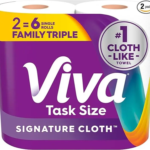 ·Viva Signature Cloth Paper Towels deliver the perfect balance of softness and durability. This pack of Viva paper towels includes 3 Double Rolls with 86 sheets per roll. Each sheet is soft like cloth and gentle for surfaces, hands, and faces. Not only that, but our paper towels are absorbent like cloth and durable like cloth to tackle the toughest messes — whether you're cleaning up spills in the kitchen, wiping down bathroom counters, or handling everyday messes. Enjoy a paper towel that is durable, absorbent, and soft for every room in your home. Packaging may vary.
