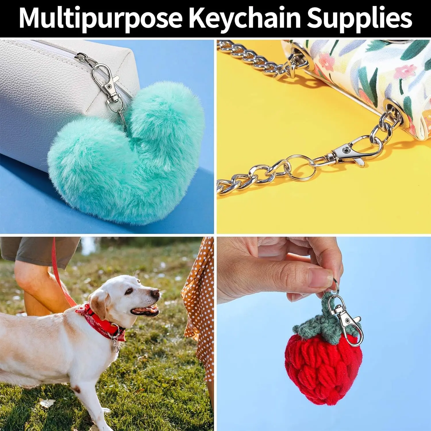 Ideal Keychains for Crafts: The keychain clasps are great for hanging key, lanyard, charm, name tag, lipstick, necklace, jewelry, mini doll, purse, pouch, photos, and making unique keychain, zipper pulls, luggage straps, handmade crafts, handmade purse, zipper pouch, and so on.