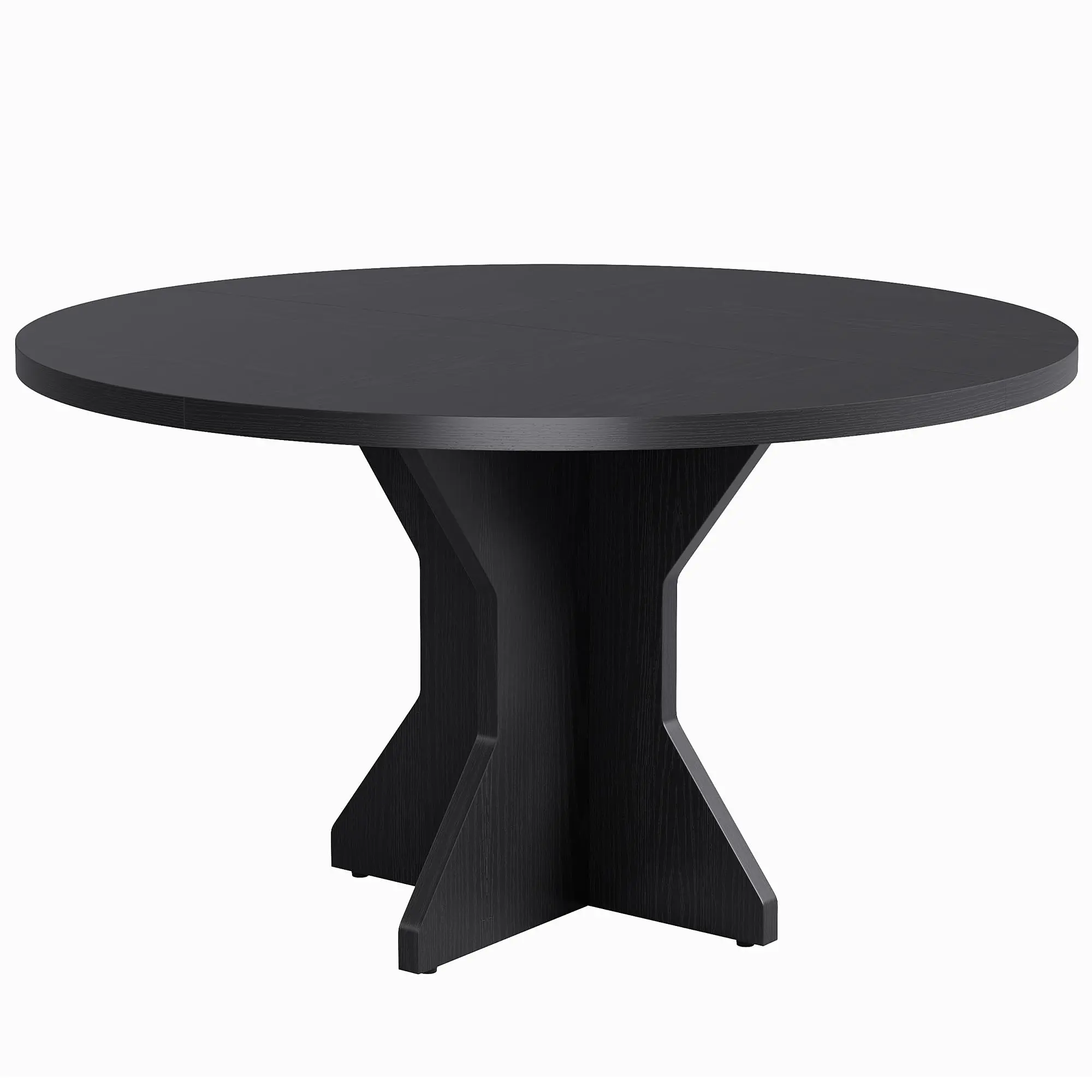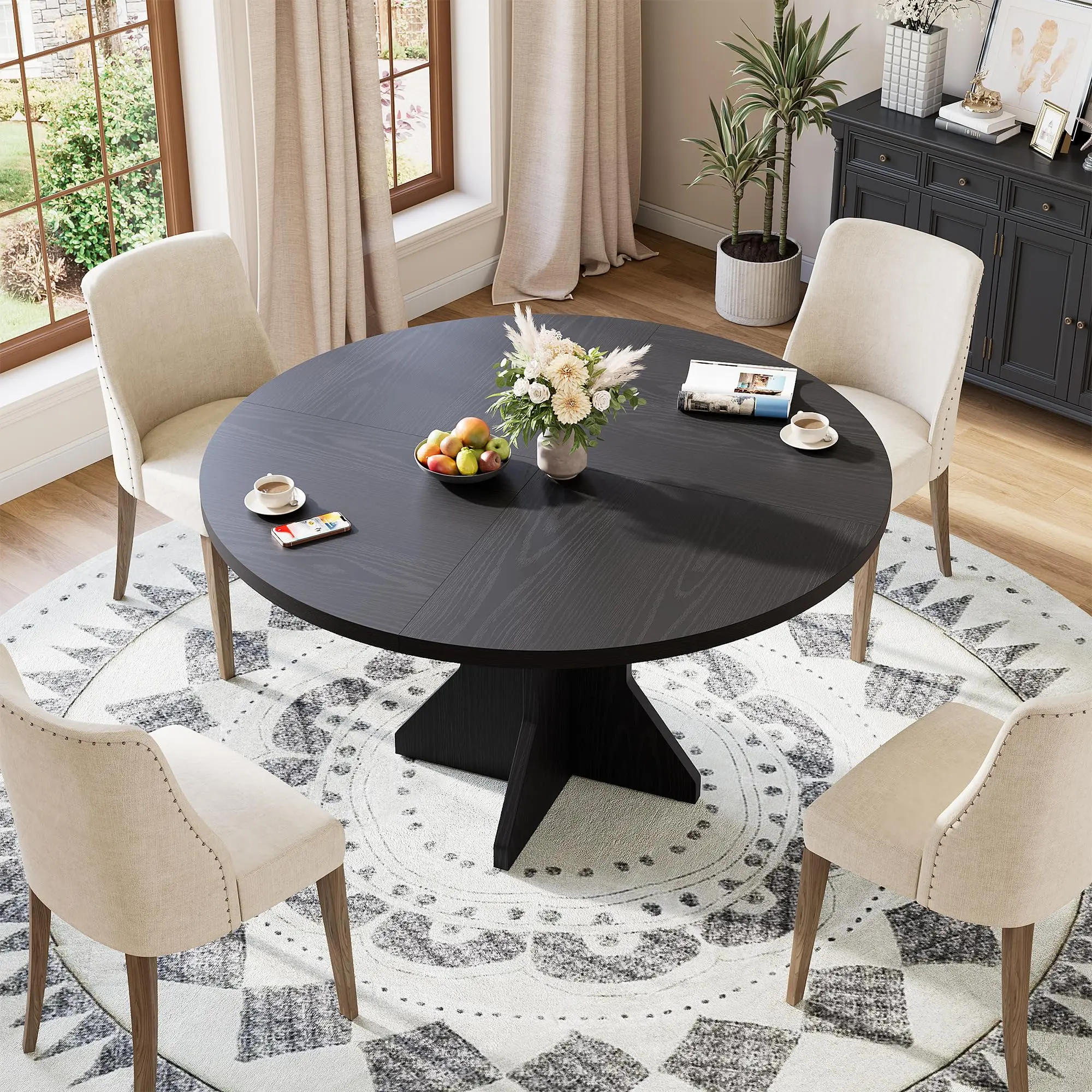 Garvee Modern Round Dining Table for 4-6, 47" Space-Saving Design with Sturdy Wood Pedestal Base, Perfect for Apartment, Kitchen, or Living Room in Black Wood Grain Finish