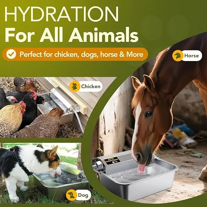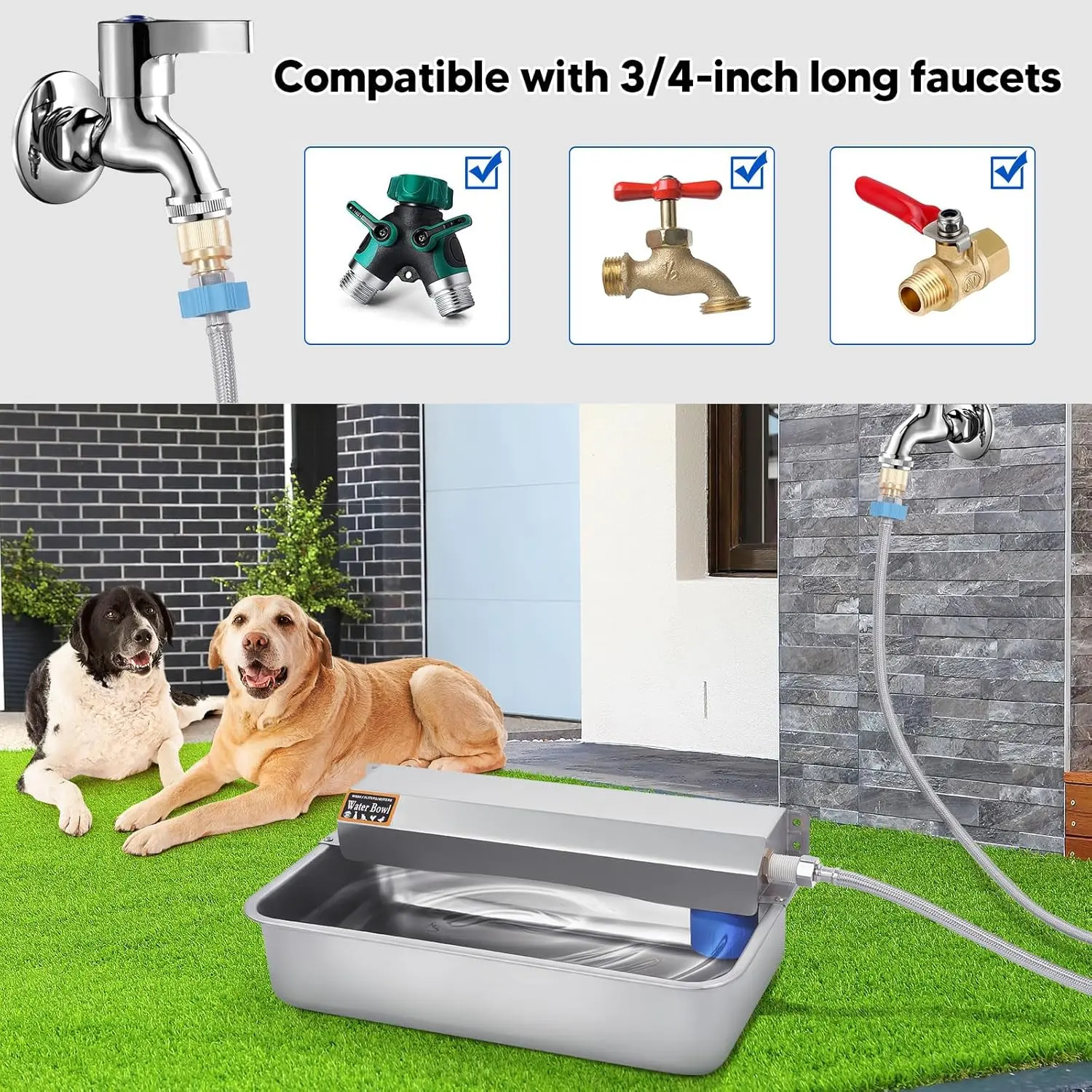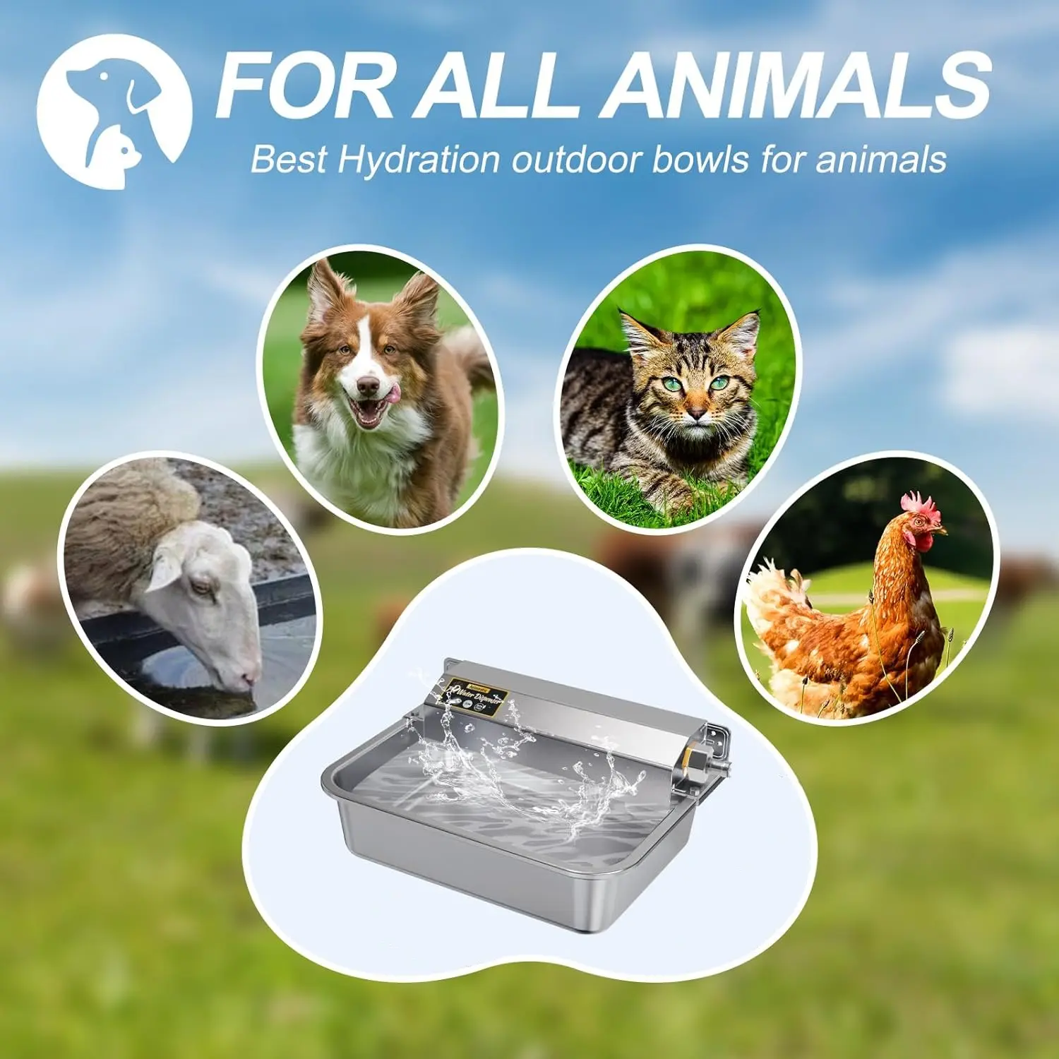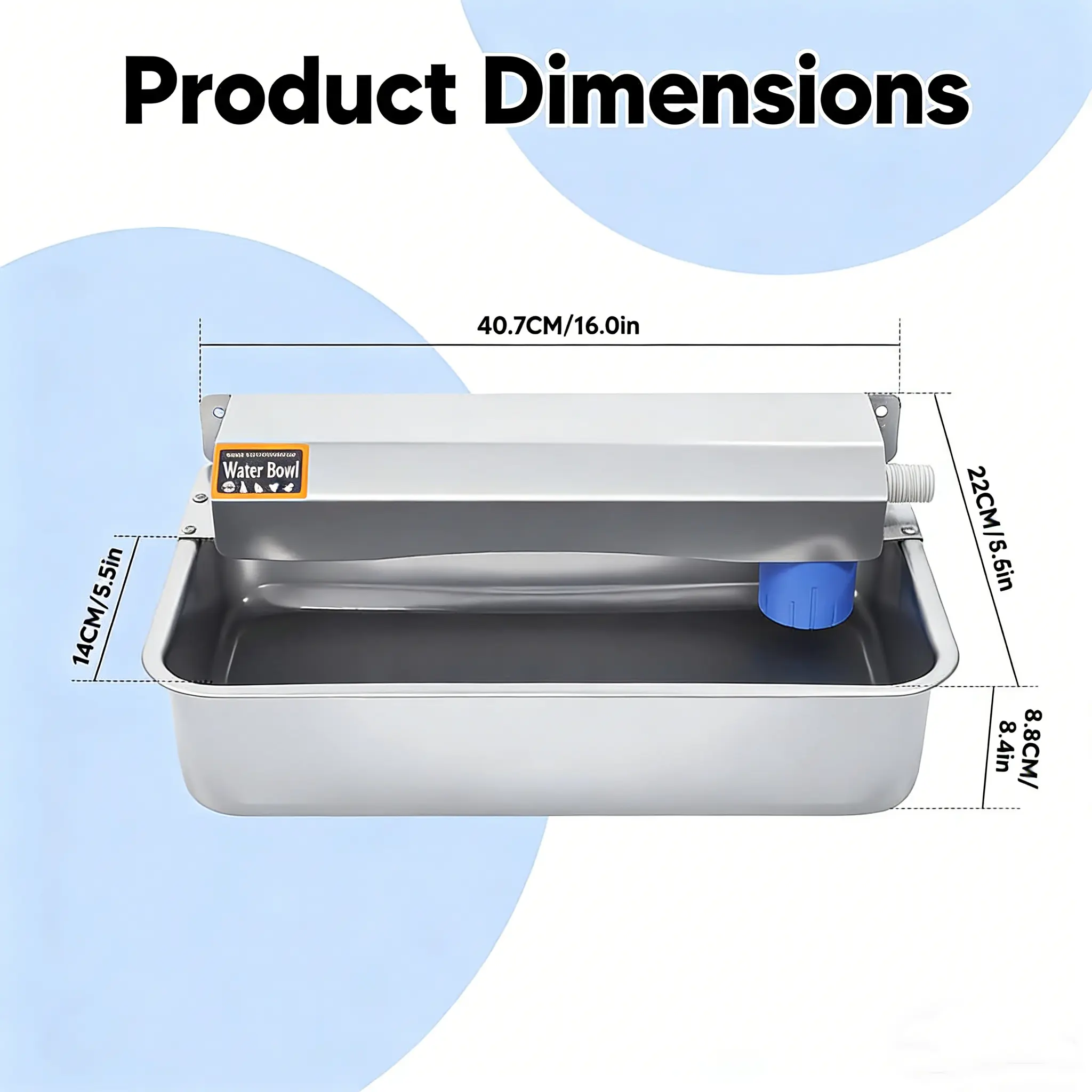 Large 6L Stainless Steel Automatic Square Dog Water Bowl Indoor & Outdoor Use Wall Mount or Floor Standing for Dogs Poultry Cattle Horses Livestock Easy to Clean (Hose Not Included)