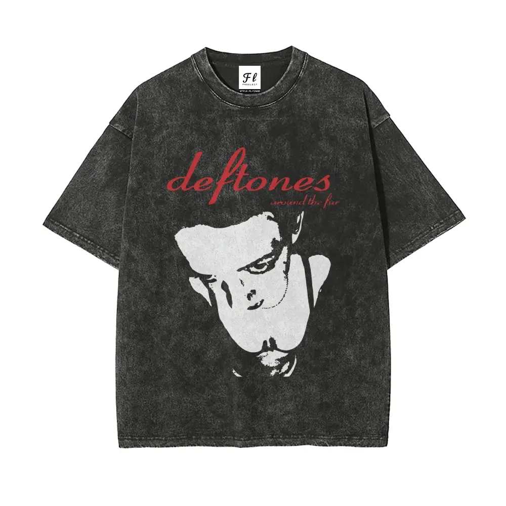 Unisex Deftones Vintage Washed Graphic T-Shirt – Retro Rock Style Tee, Casual Short Sleeve Streetwear Top