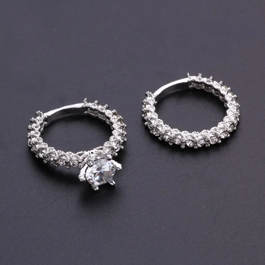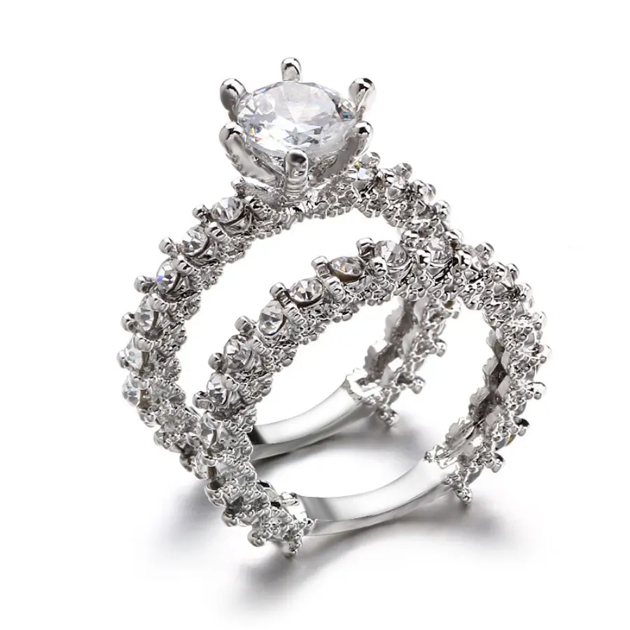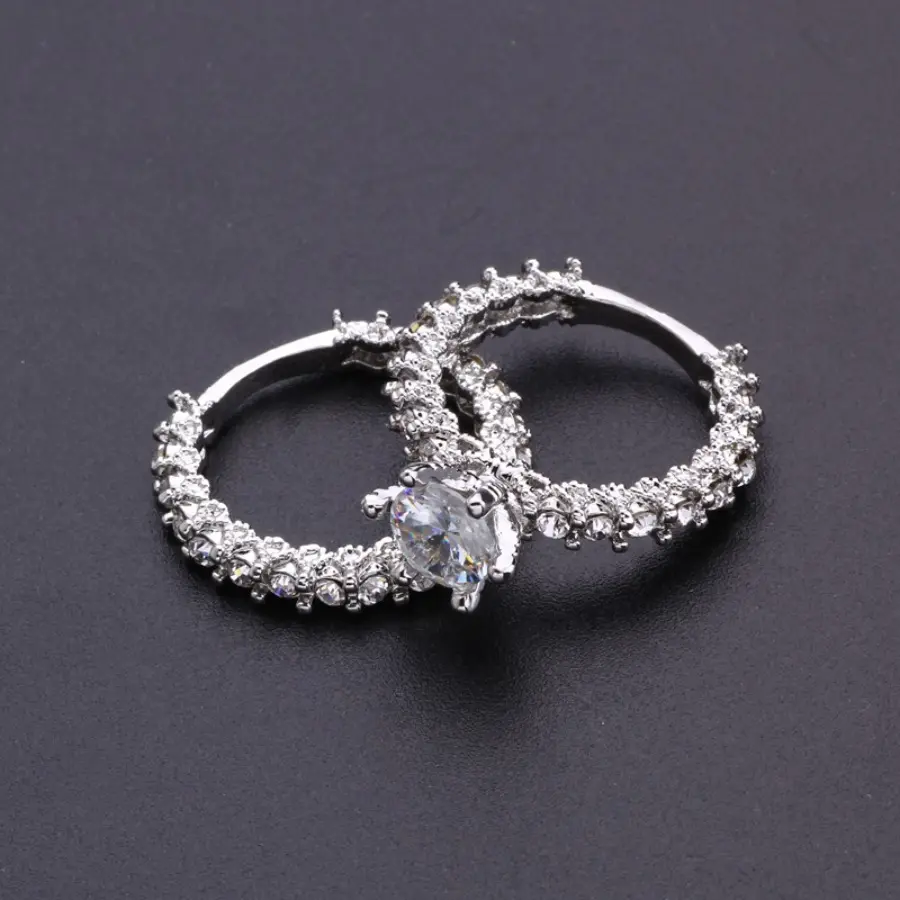Flash diamond round engagement set ring, exquisite flash diamond closed double ring