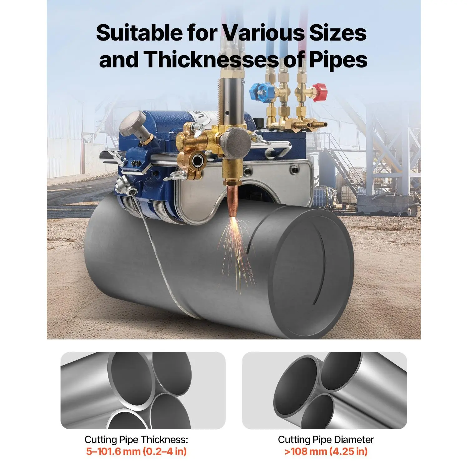 The pipe beveling machine comes with 3 copper cutting tips, offering excellent thermal conductivity and high-temperature resistance, ensuring easy cutting of steel pipes, aluminum alloys, and other metal materials through a uniform and stable flame.