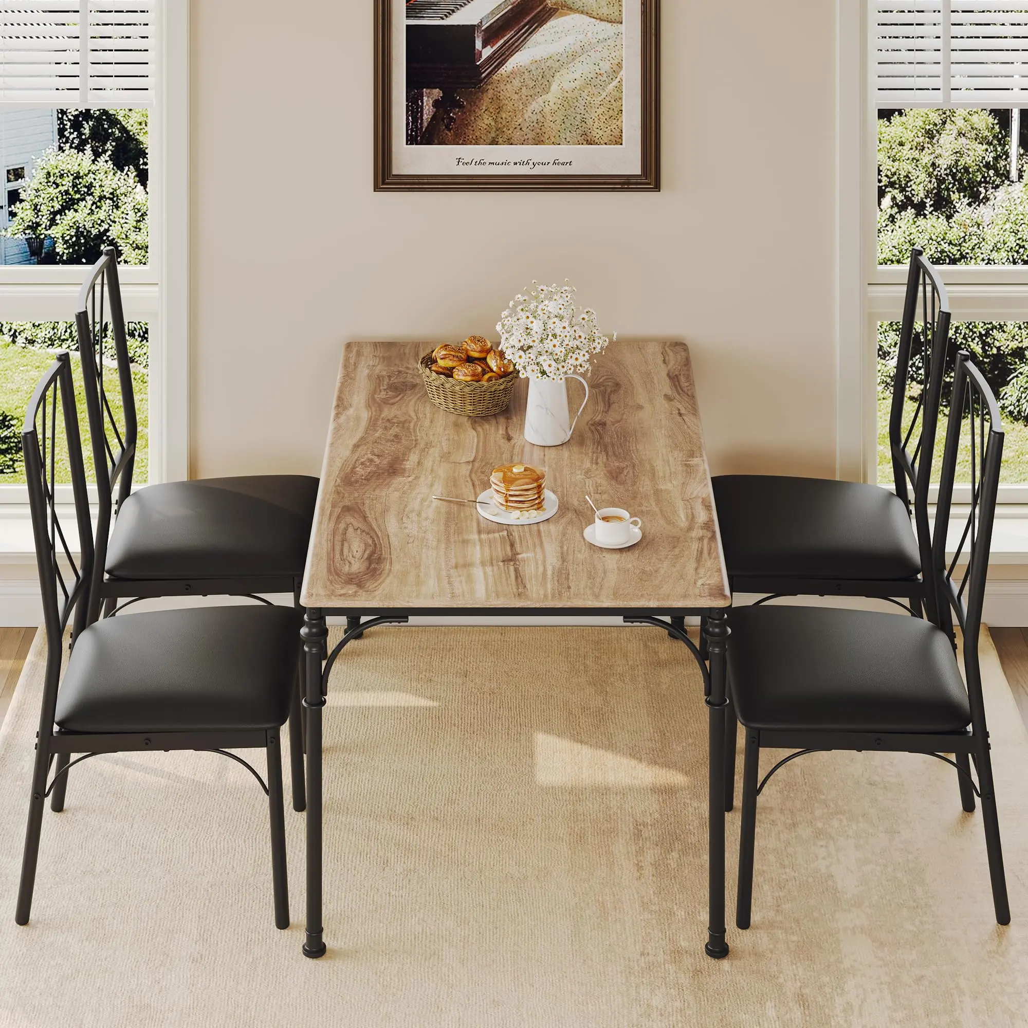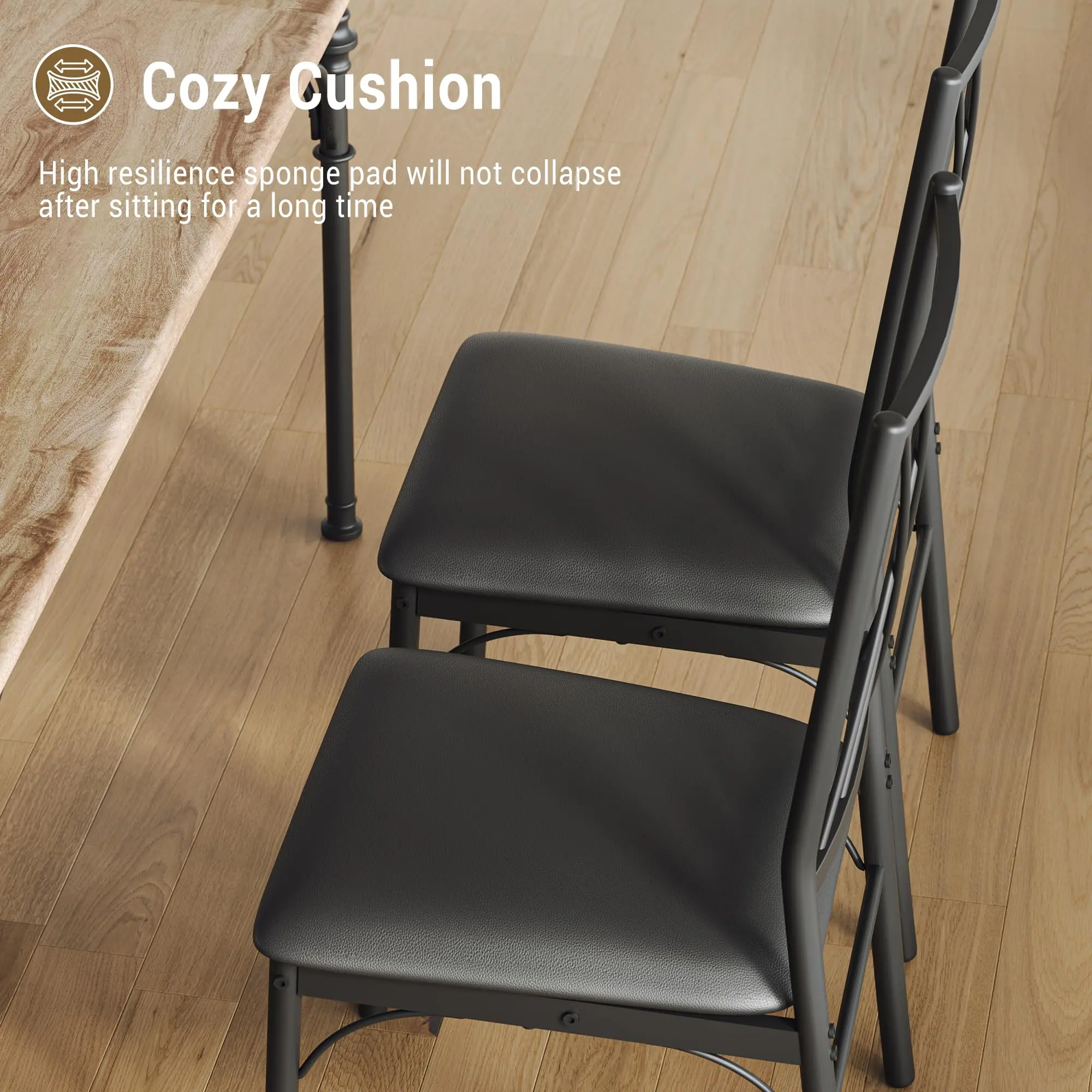 · Comfortable Seating for Four: Each chair features ergonomic angled backs and soft high-density PU cushions for lasting support and comfort during meals.