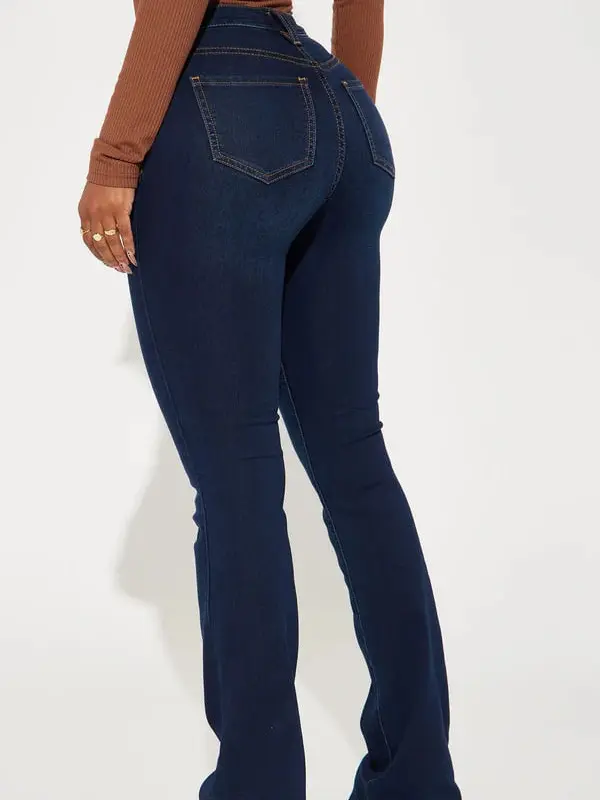 Best Stretch Ripped High Rise Bootcut Jeans - Dark Wash