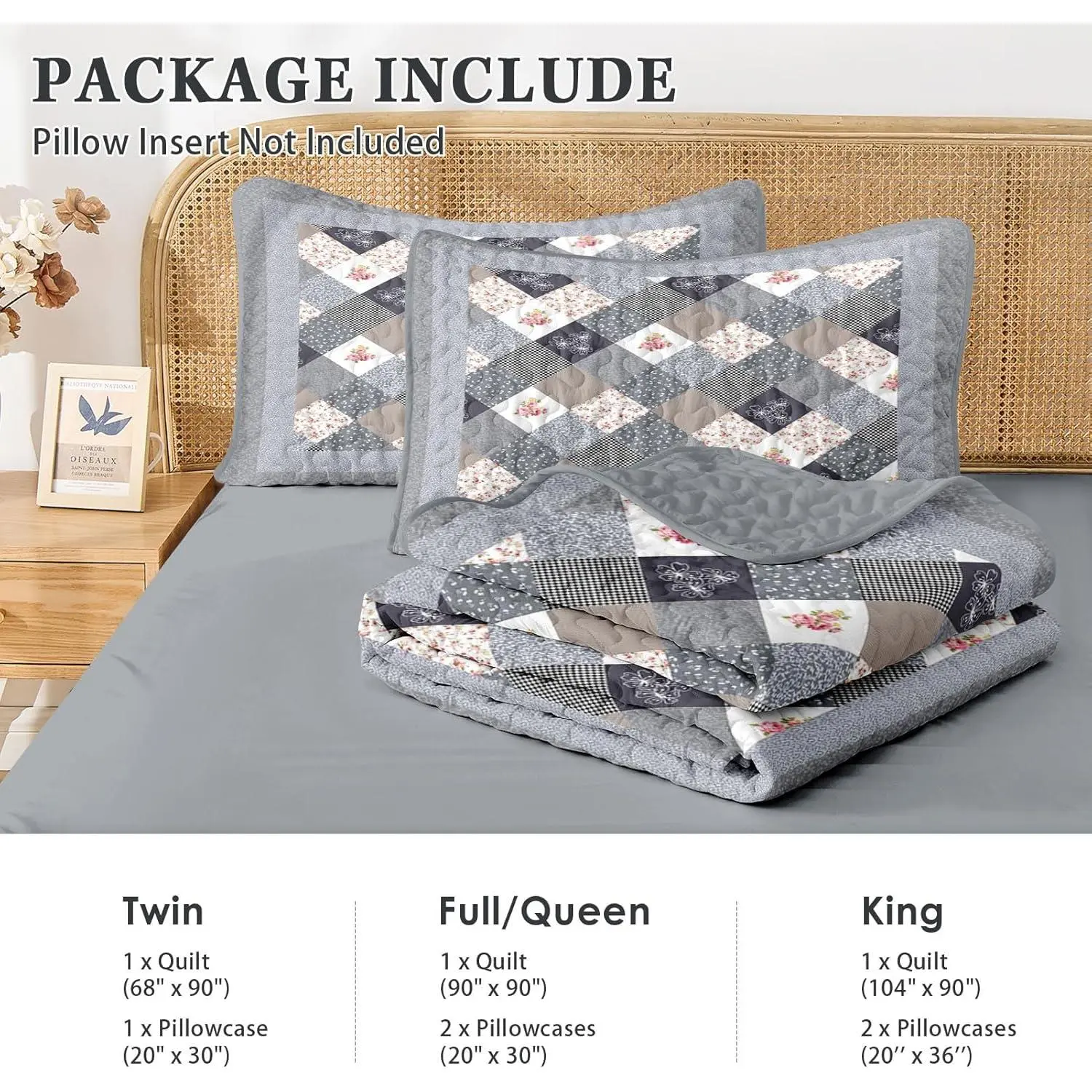 Perfect Fit and Sizing Options: This full/queen size bedspread set includes a quilt (90"x 90") and two matching decorative pillow shams (20"x 30"), adding a touch of elegance to your home decor. Available in king full queen and twin sizes, this quilt is meticulously crafted to meet your needs with precision.Premium Quality Materials: Designed for all day comfort, this lightweight quilt is made from premium microfiber with tight stitching for ultimate softness and lasting comfort.Ideal Bedroom Accent: The Pamnest comforter set, with its exquisite patterns, elevates your bedroom decor, making it an excellent gift choice for loved ones.Suitable for Seasons: Designed for all day use, this versatile set functions as a cozy quilt in spring and summer and as a bedspread or coverlet in autumn and winter. Bedspread strikes the perfect balance between weight, warmth, and softness. It enhances breathability, wicks away moisture, and ensures you sleep comfortably without feeling too hot or cold.Easy Care: Maintaining this quilt set is a breeze. Simply machine wash in cold water and tumble dry on low. There's no need for chlorine bleach, and it will look as good as new after washing.