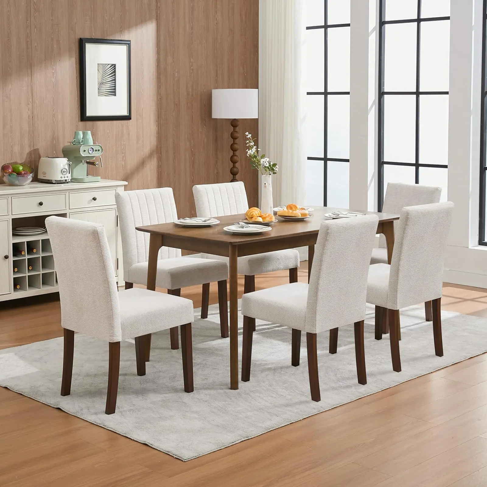 · Premium Linen Fabric & Durable Construction: Made with breathable linen fabric and a sturdy rubberwood frame, these Parsons dining chairs offer long-lasting durability and comfort. Equipped with 4 footpads, they stay stable on any floor while protecting surfaces from scratches, reducing noise.