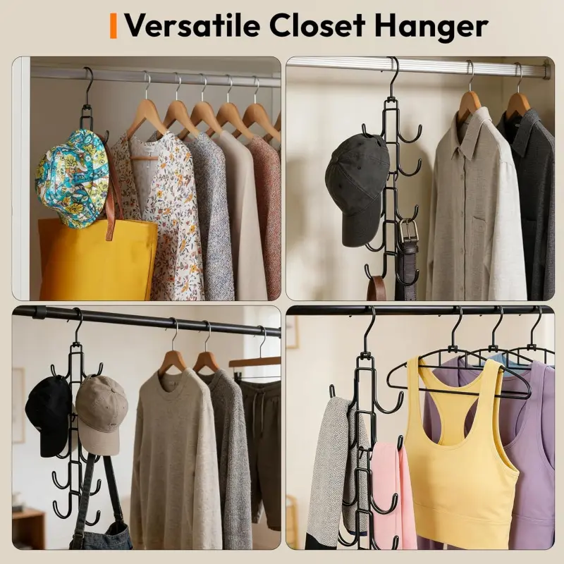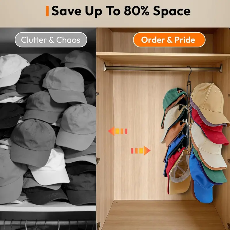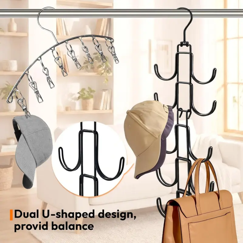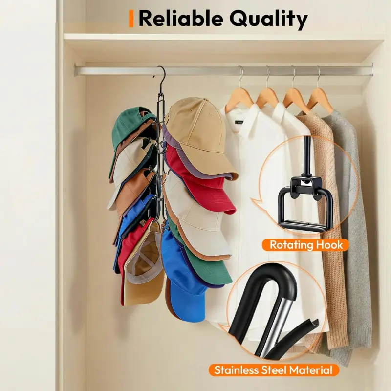 Hat Hangers for Closet, Hat Organizer for Baseball Caps, Stainless Steel Hat Rack with 10 Hooks for Caps Storage and Closet Organization (Black)