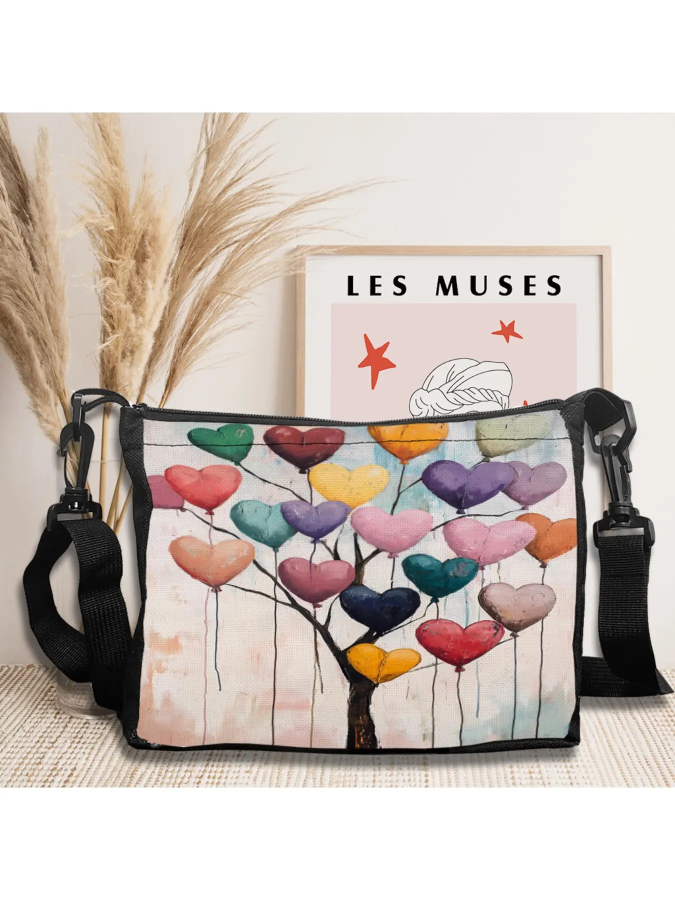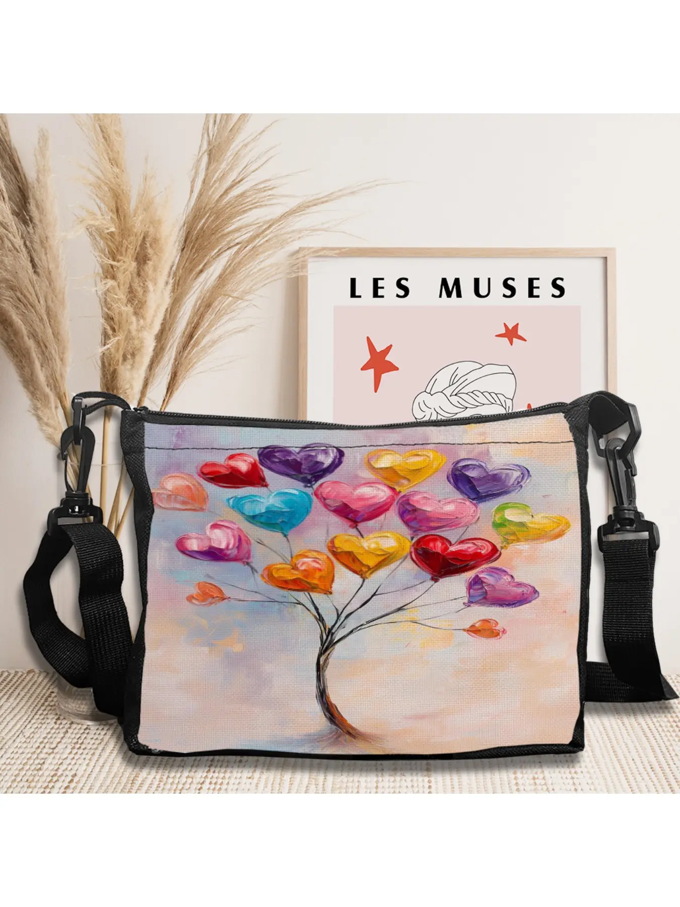 Colored Love Balloon Tree Printed Shoulder Bag for Holiday Gifts, Daily Use 9.16