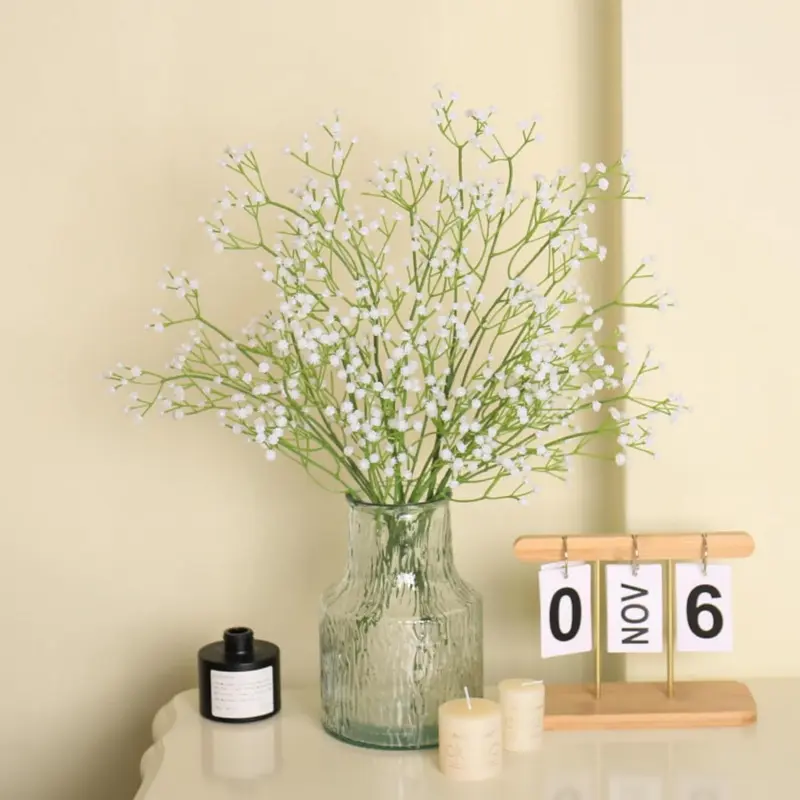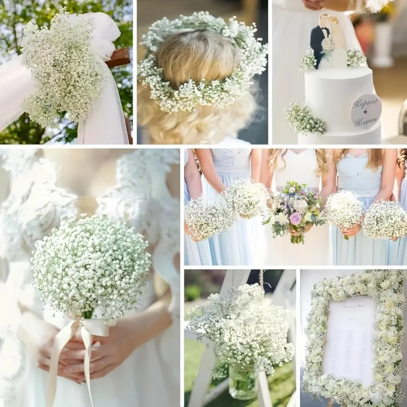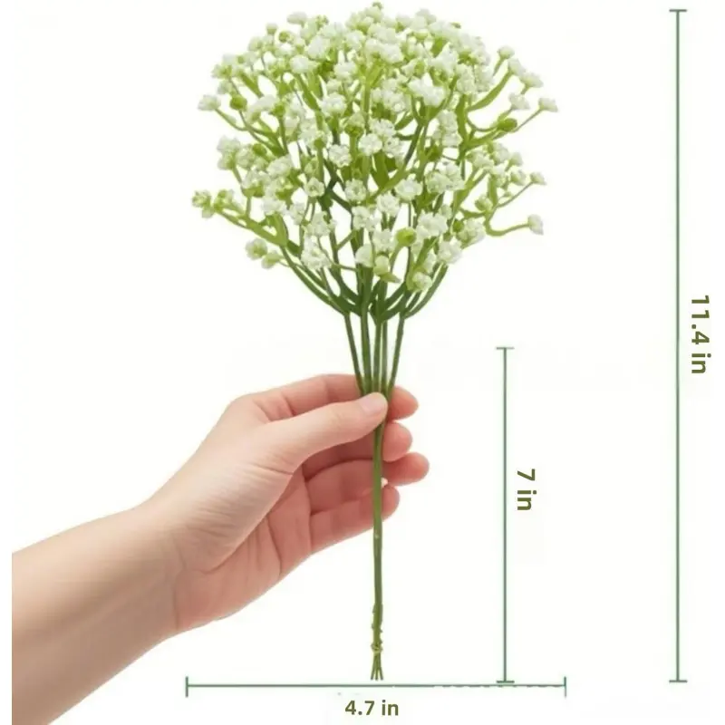 Bring timeless elegance to your arrangements with these 12/24/50 PCS Artificial Baby’s Breath Flowers.Each stem features 90 tiny, realistic buds made from high-quality PU material, mimicking the soft texture and look of real gypsophila.Perfect for rustic weddings, romantic centerpieces, or home decorations.