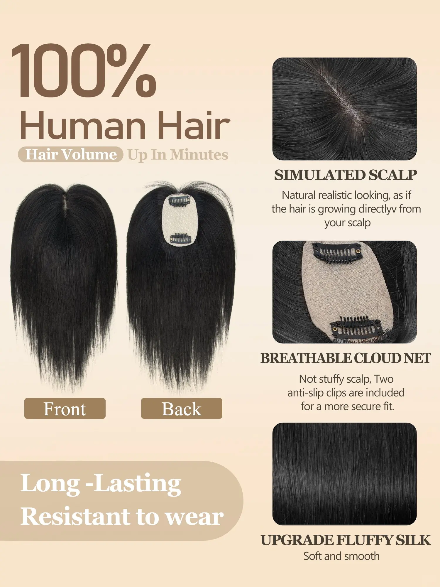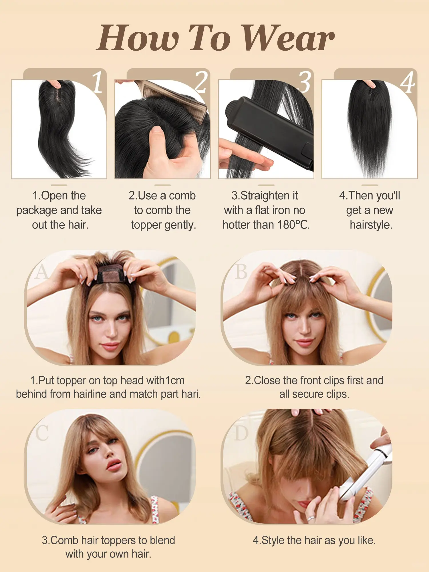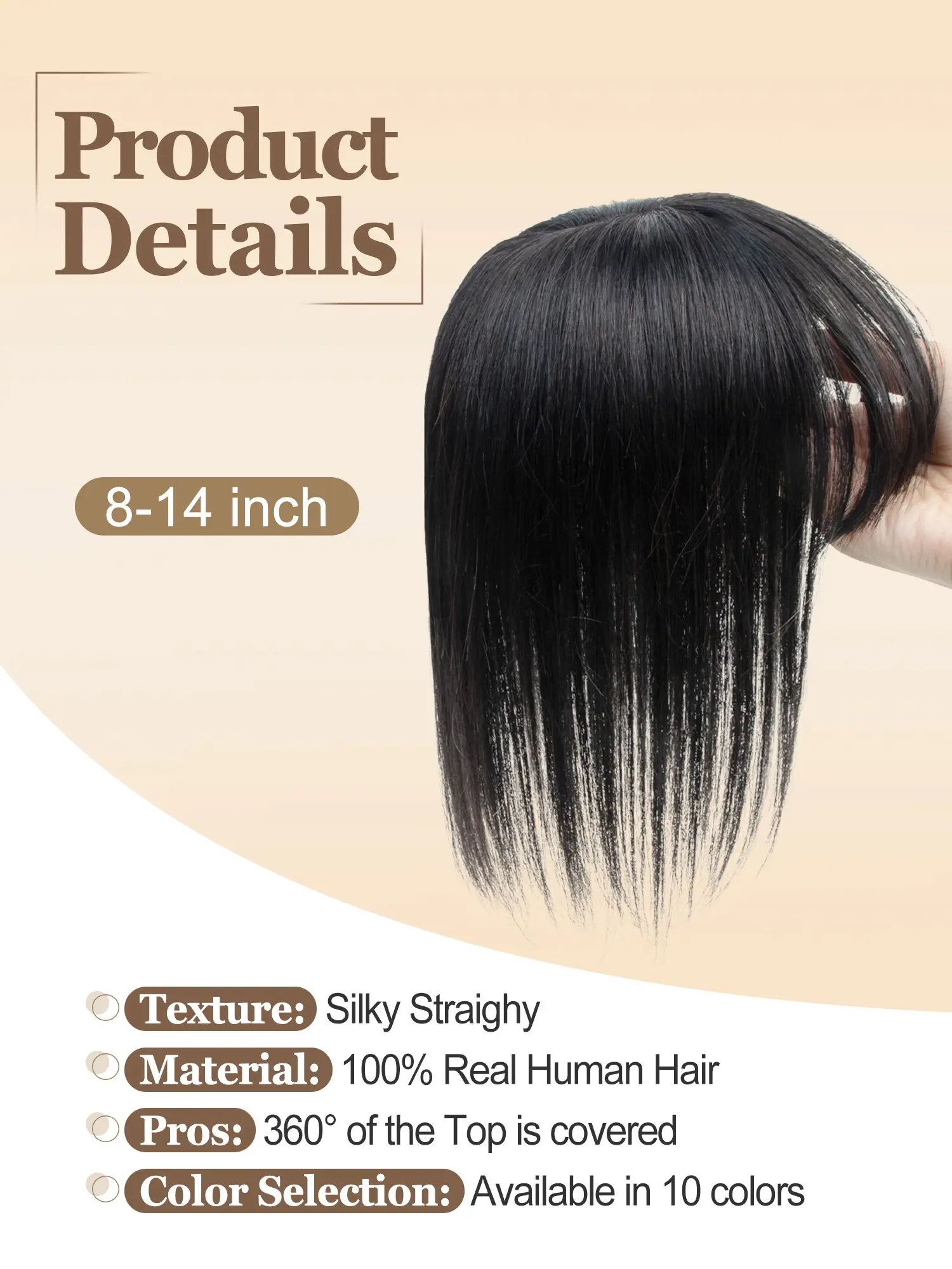 Real Human Hair Toppers for Women Daily 360° Bangs 3D Hair Pieces with Thinning Hair Bangs20, 25, 30, 35cm Real Hair Women's Wig Set, Increase Volume, Change Style, Fashionable Straight Hairstyle