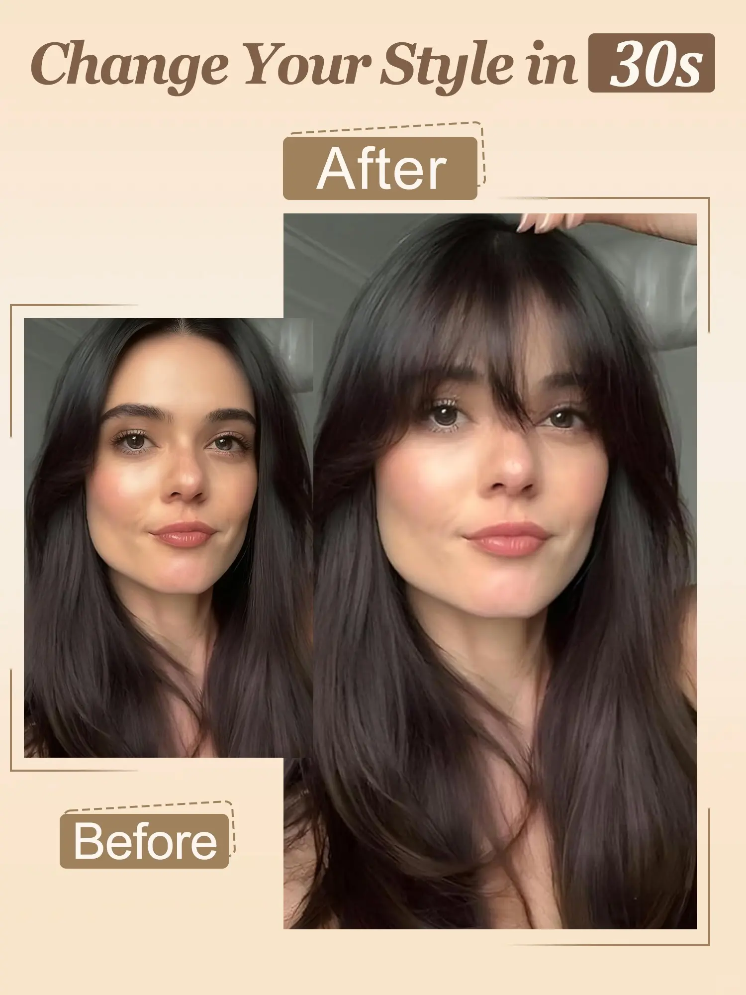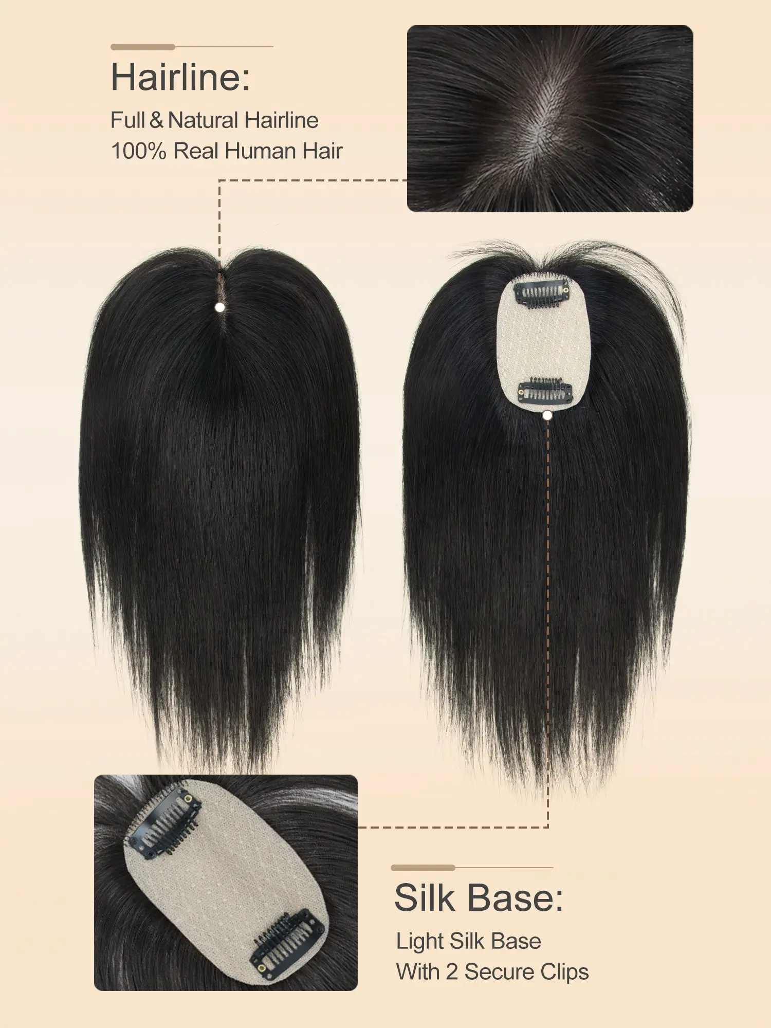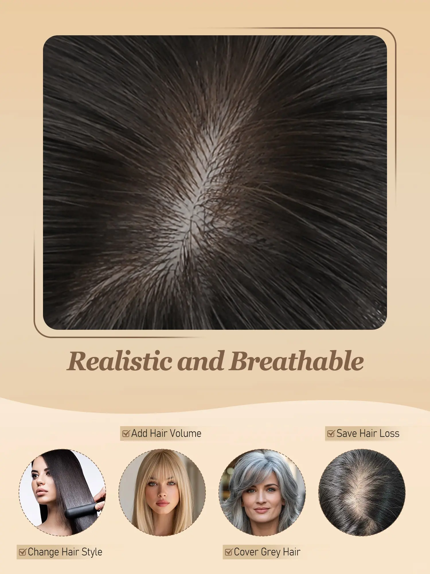 Real Human Hair Toppers for Women Daily 360° Bangs 3D Hair Pieces with Thinning Hair Bangs20, 25, 30, 35cm Real Hair Women's Wig Set, Increase Volume, Change Style, Fashionable Straight Hairstyle